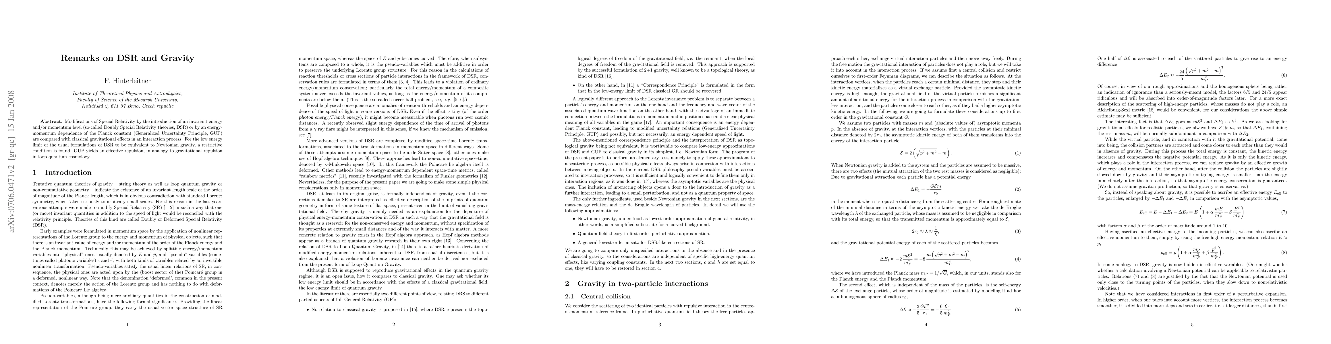 This paper compares modifications of Special Relativity, such as Doubly Special Relativity (DSR) and Generalized Uncertainty Principle (GUP), with classical gravitational effects in interaction processes. It finds a restrictive condition for DSR to be equivalent to Newtonian gravity in low energy limits and notes that GUP produces an effective repulsion similar to gravitational repulsion in loop quantum cosmology.