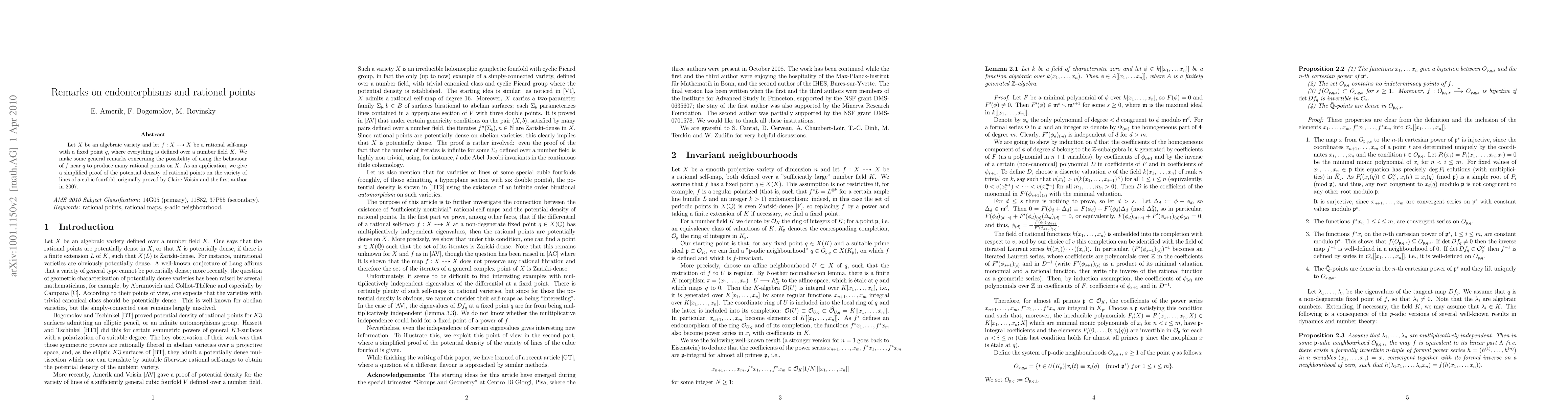Let X be a variety over a number field and let f: X --> X be an "interesting" rational self-map with a fixed point q. We make some general remarks concerning the possibility of using the behaviour of f near q to produce many rational points on X. As an application, we give a simplified proof of the potential density of rational points on the variety of lines of a cubic fourfold (originally obtained by Claire Voisin and the first author in 2007).