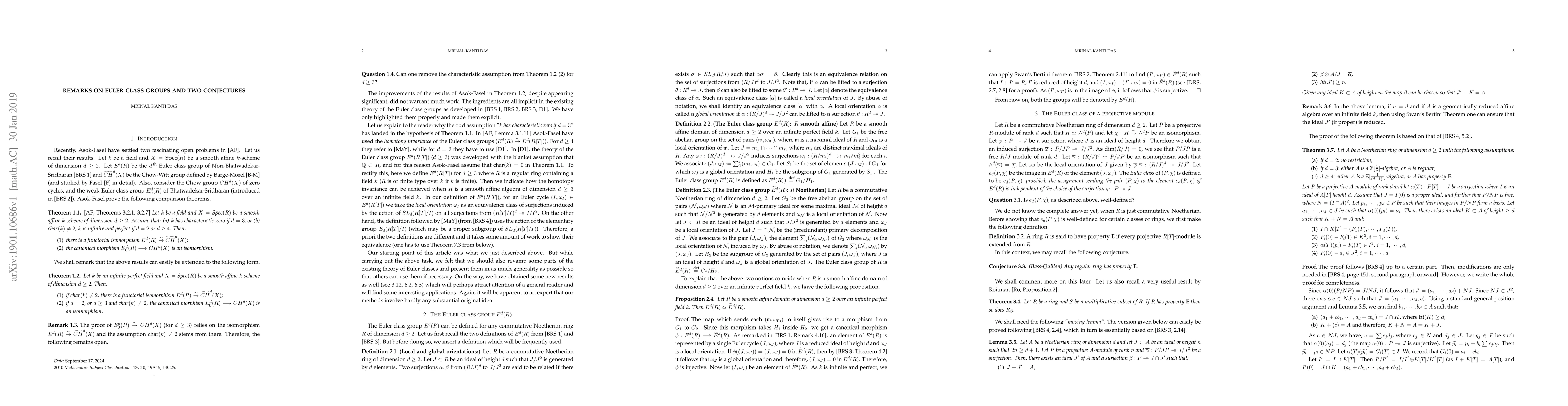 We revamp the existing theory of Euler class groups and present them in as much generality as possible. We remark on two results of Asok-Fasel and indicate some improvements.