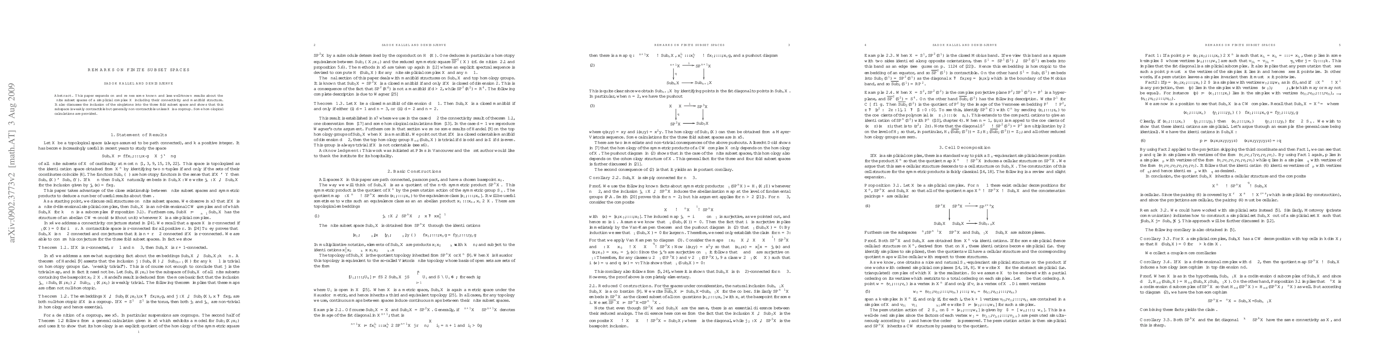 This paper expands on and refines some known and less well-known results about the finite subset spaces of a simplicial complex $X$ including their connectivity and their top homology groups. It also discusses the inclusion of the singletons into the three fold subset space and shows that this subspace is weakly contractible but generally non-contractible unless $X$ is a co-$H$ group. Some homological calculations are provided.
