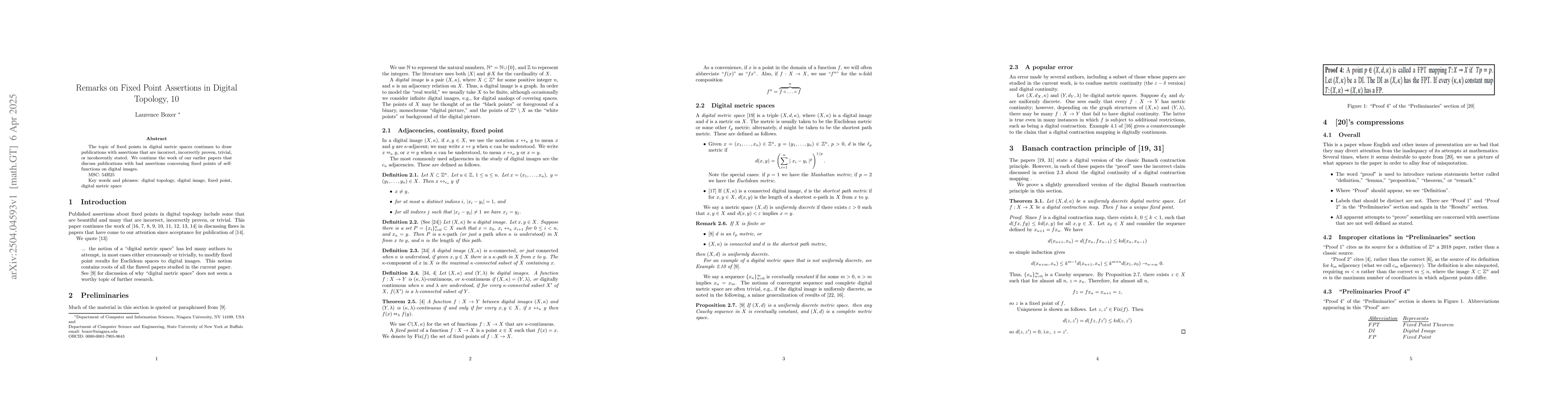 Researchers investigate fixed points in digital metric spaces to improve accuracy in publications regarding self-functions on digital images. They build upon earlier work to address incorrect or poorly stated assertions about these concepts.