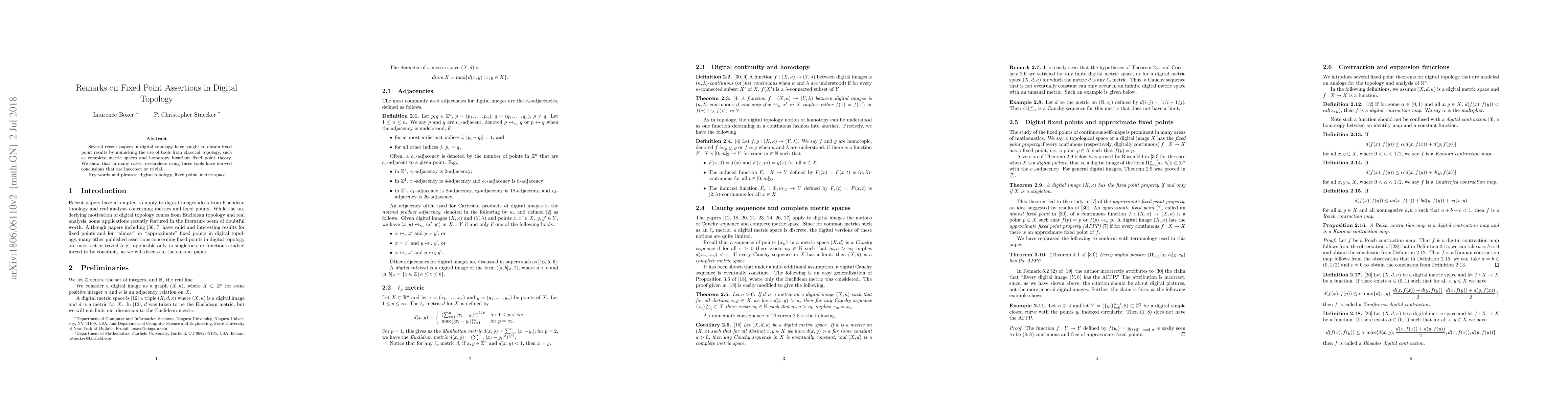 Several recent papers in digital topology have sought to obtain fixed point results by mimicking the use of tools from classical topology, such as complete metric spaces and homotopy invariant fixed point theory. We show that in many cases, researchers using these tools have derived conclusions that are incorrect or trivial.