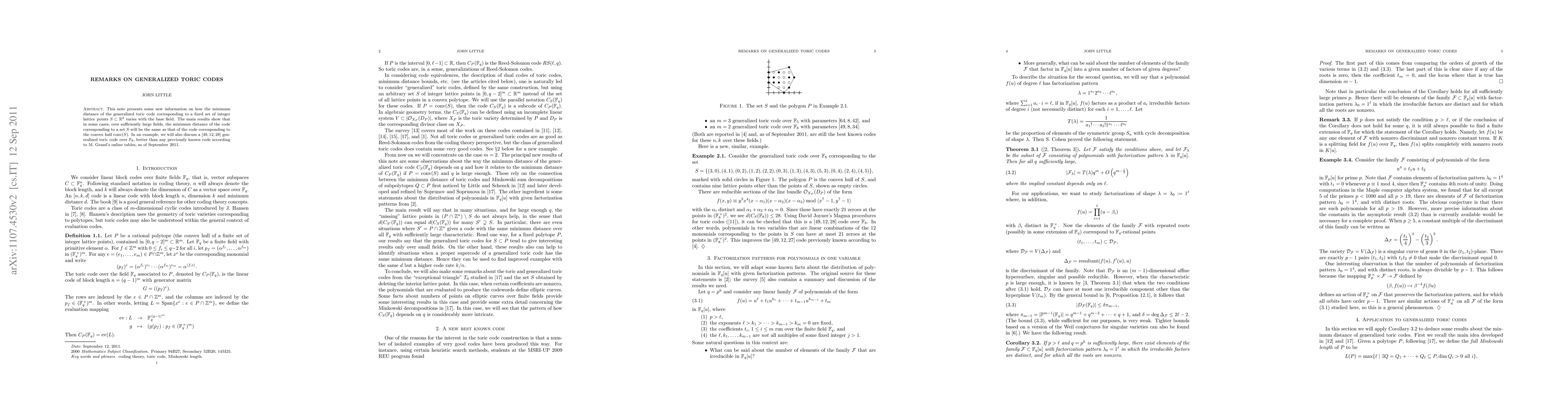 Researchers found that the minimum distance of some generalized toric codes can be the same as their convex hull counterparts over large fields, leading to new and improved error-correcting codes.