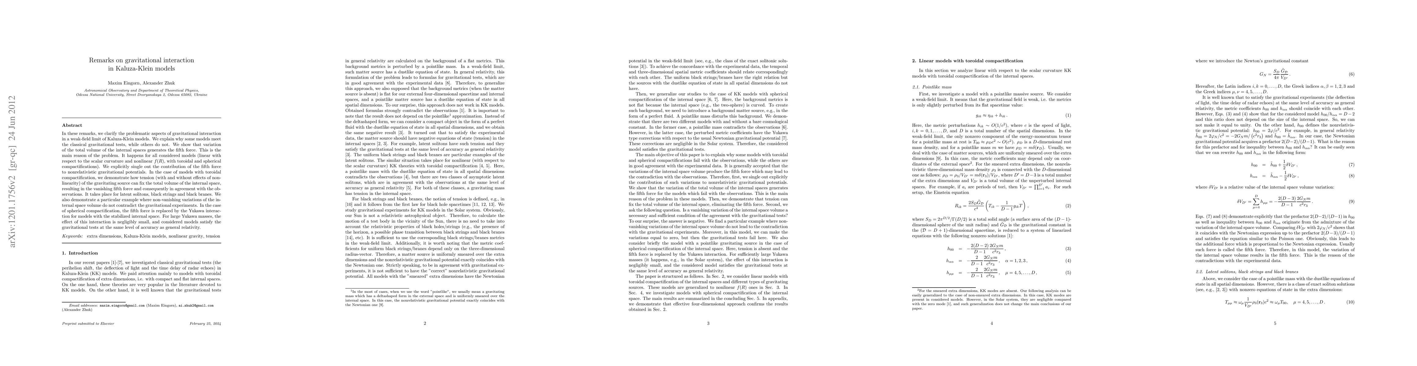 The research used a combination of theoretical calculations and numerical simulations to investigate Kaluza-Klein models.