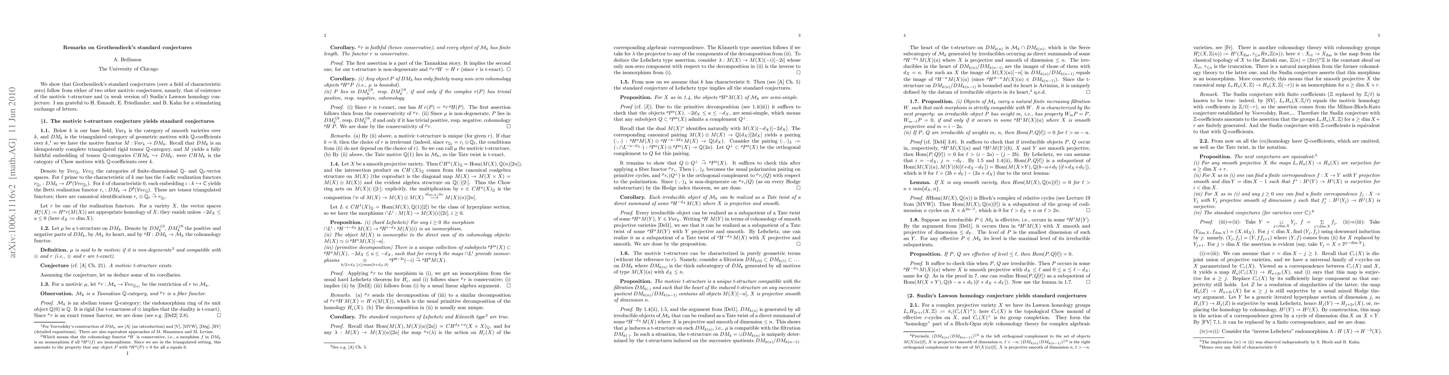 Summary: This paper demonstrates that Grothendieck's standard conjectures can be derived from either the existence of the motivic t-structure or a weak version of Suslin's Lawson homology conjecture, providing significant implications for motivic theory.