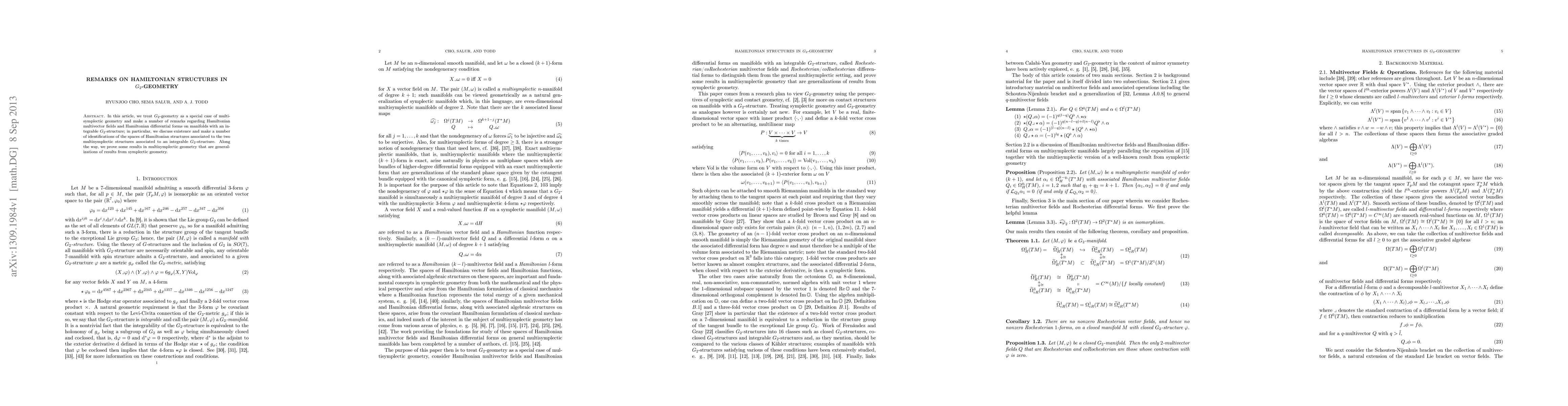In this article, we treat G_2-geometry as a special case of multisymplectic geometry and make a number of remarks regarding Hamiltonian multivector fields and Hamiltonian differential forms on manifolds with an integrable G_2-structure; in particular, we discuss existence and make a number of identifications of the spaces of Hamiltonian structures associated to the two multisymplectic structures associated to an integrable G_2-structure. Along the way, we prove some results in multisymplectic geometry that are generalizations of results from symplectic geometry.