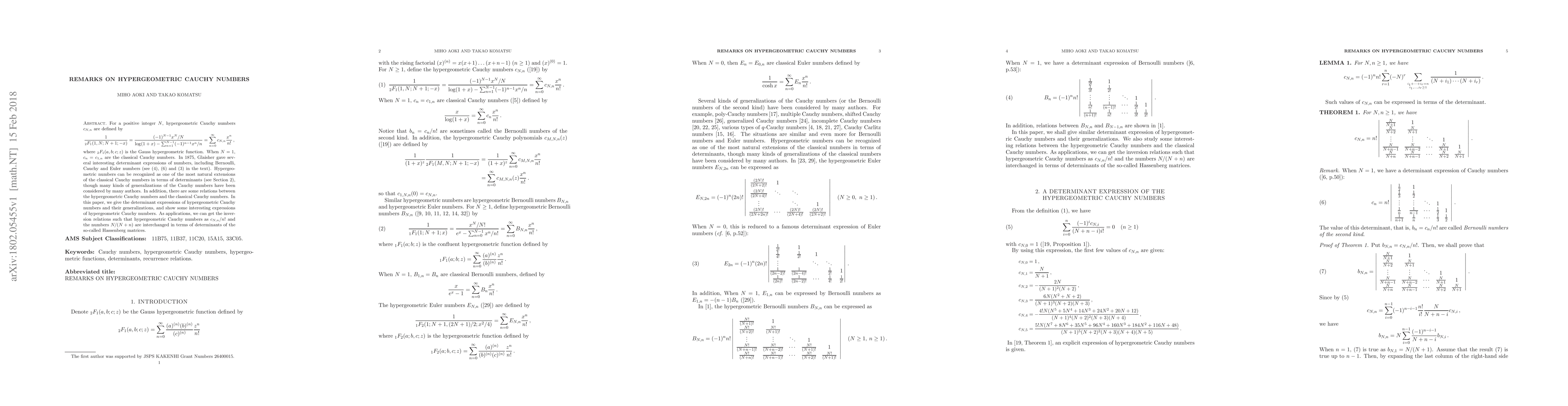 This paper explores the determinant expressions of hypergeometric Cauchy numbers, extending classical Cauchy numbers, and reveals intriguing relationships between these hypergeometric variants and their classical counterparts.