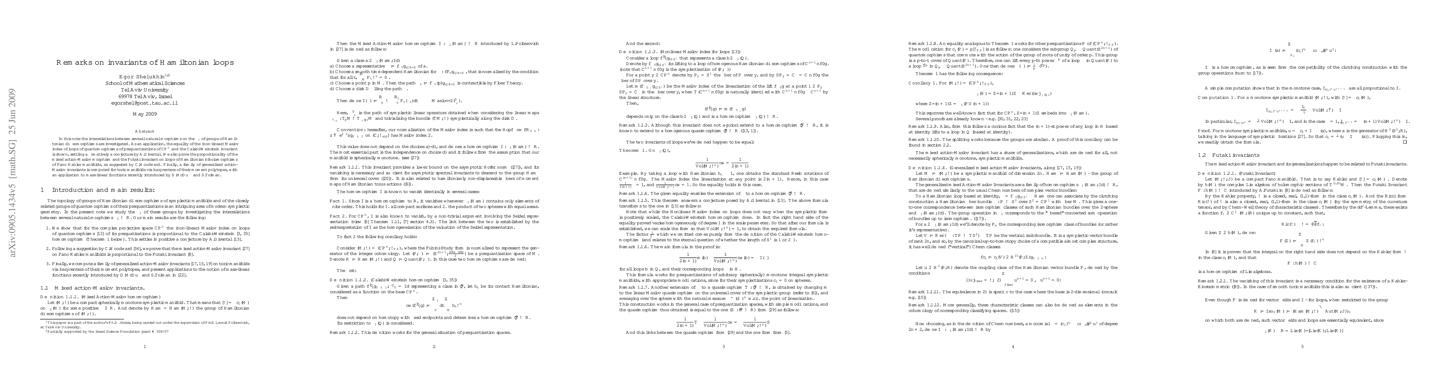 In this note the interrelations between several natural morphisms on the $\pi_1$ of groups of Hamiltonian diffeomorphisms are investigated. As an application, the equality of the (non-linear) Maslov index of loops of quantomorphisms of prequantizations of $\C P^n$ and the Calabi-Weinstein invariant is shown, settling affirmatively a conjecture by A. Givental. We also prove the proportionality of the mixed action-Maslov morphism and the Futaki invariant on loops of Hamiltonian biholomorphisms of Fano Kahler manifolds, as suggested by C. Woodward. Finally, a family of generalized action-Maslov invariants is computed for toric manifolds via barycenters of their moment polytopes, with an application to mass-linear functions recently introduced by D. McDuff and S. Tolman.