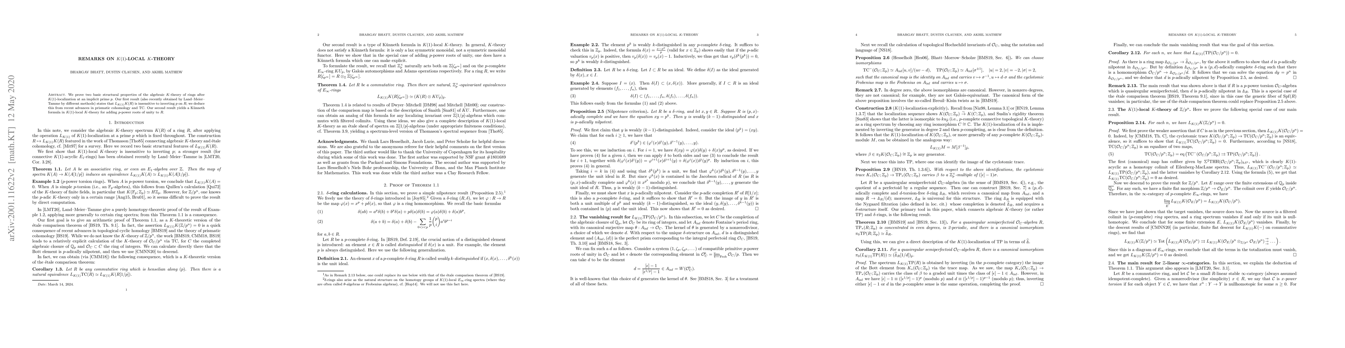 The paper employs advances in prismatic cohomology and topological cyclic homology (TC) to prove structural properties of algebraic K-theory after K(1)-localization at an implicit prime p.