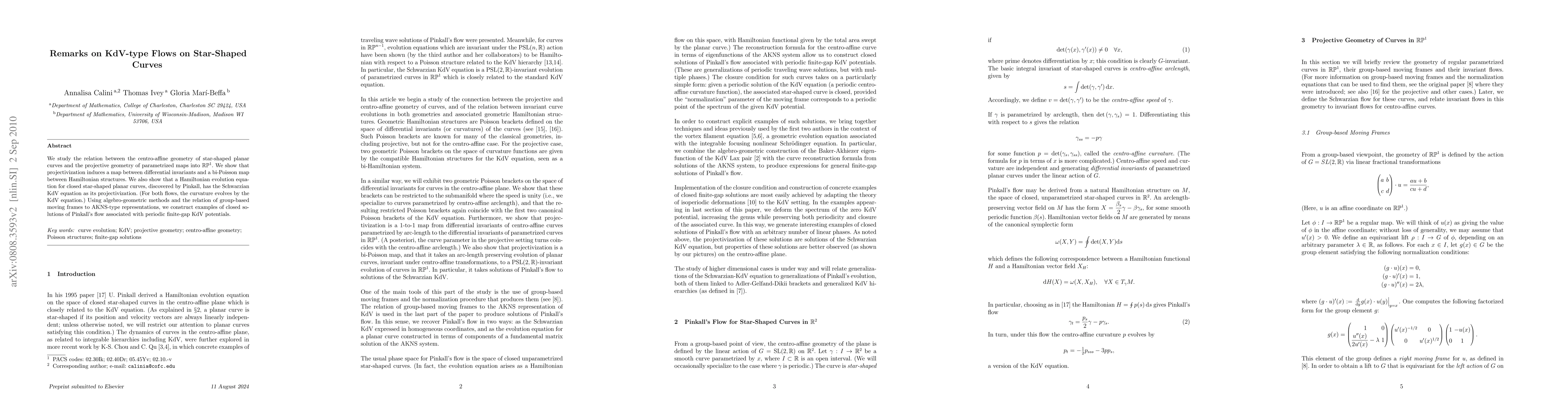 This paper explores the connection between centro-affine geometry of star-shaped planar curves and projective geometry of parametrized maps, revealing a bi-Poisson map between Hamiltonian structures and showing that Pinkall's Hamiltonian evolution equation for these curves corresponds to the Schwarzian KdV equation. It also constructs closed solutions linked to periodic finite-gap KdV potentials using algebro-geometric methods.