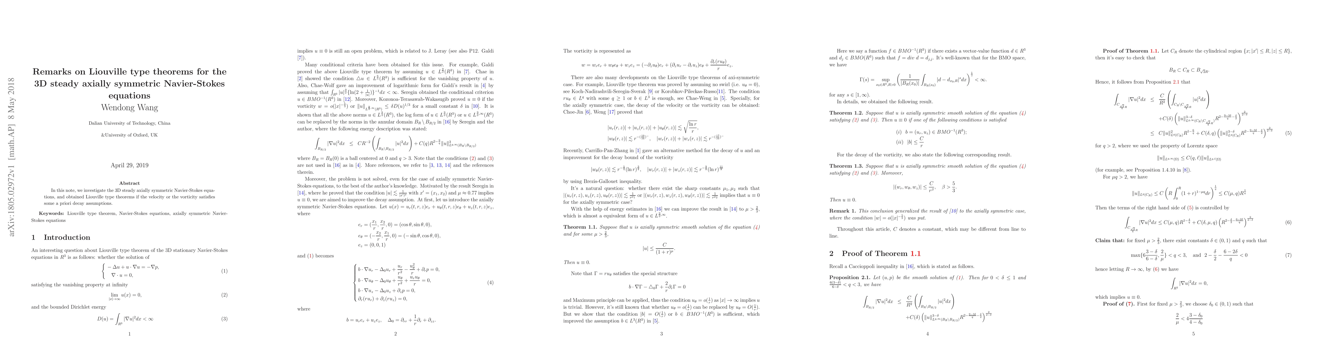 This research paper investigates Liouville type theorems for 3D steady axially symmetric Navier-Stokes equations under certain decay assumptions, leading to new insights into fluid dynamics.