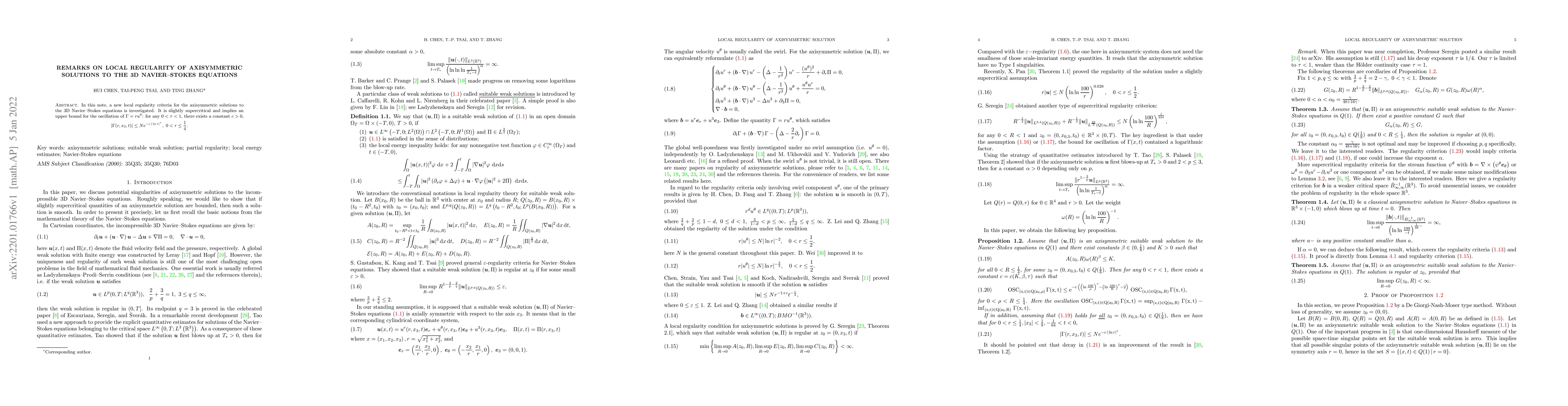 In this note, a new local regularity criteria for the axisymmetric solutions