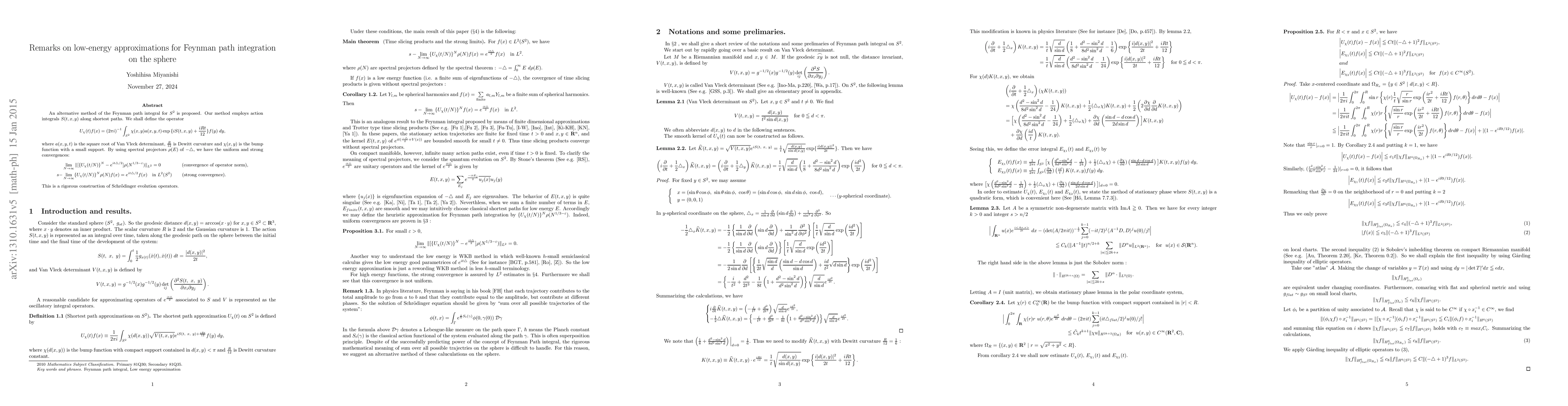 We shall define the oscillatory integrals by action integrals, Van Vleck determinant and Dewitt curvature. Our method employs action integrals along the shortest paths. We have the strong but not uniform convergence of time slicing Feynman path integrals for low energy functions.