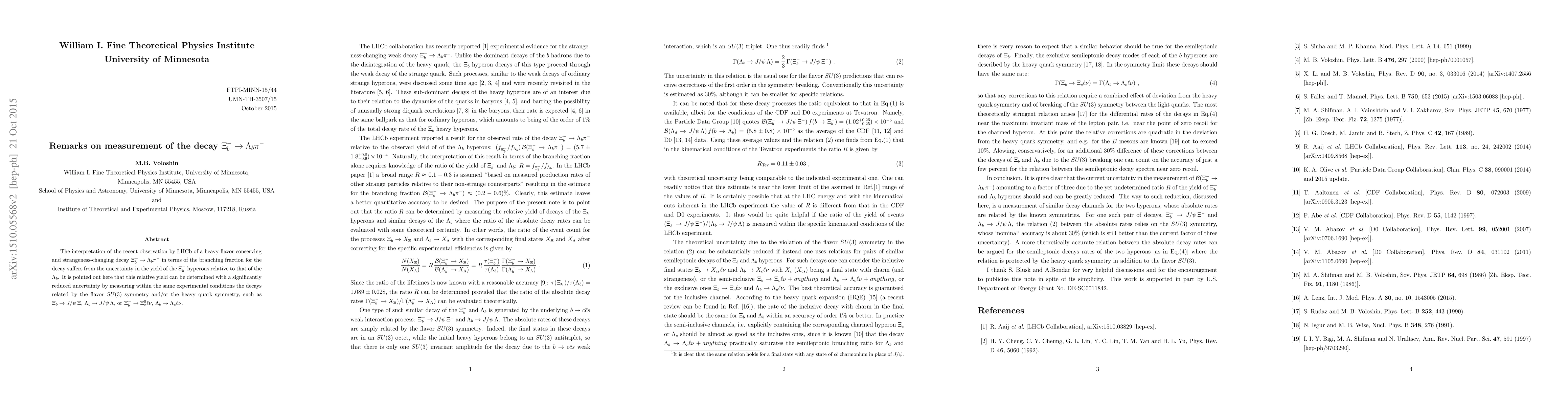 The interpretation of the recent observation by LHCb of a heavy-flavor-conserving and strangeness-changing decay $\Xi_b^- \to \Lambda_b \pi^-$ in terms of the branching fraction for the decay suffers from the uncertainty in the yield of the $\Xi_b^-$ hyperons relative to that of the $\Lambda_b$. It is pointed out here that this relative yield can be determined with a significantly reduced uncertainty by measuring within the same experimental conditions the decays related by the flavor $SU(3)$ symmetry and/or the heavy quark symmetry, such as $\Xi_b \to J/\psi \, \Xi$, $\Lambda_b \to J/\psi \, \Lambda$, or $\Xi_b^- \to \Xi_c^0 \ell \nu$, $\Lambda_b \to \Lambda_c \ell \nu$.