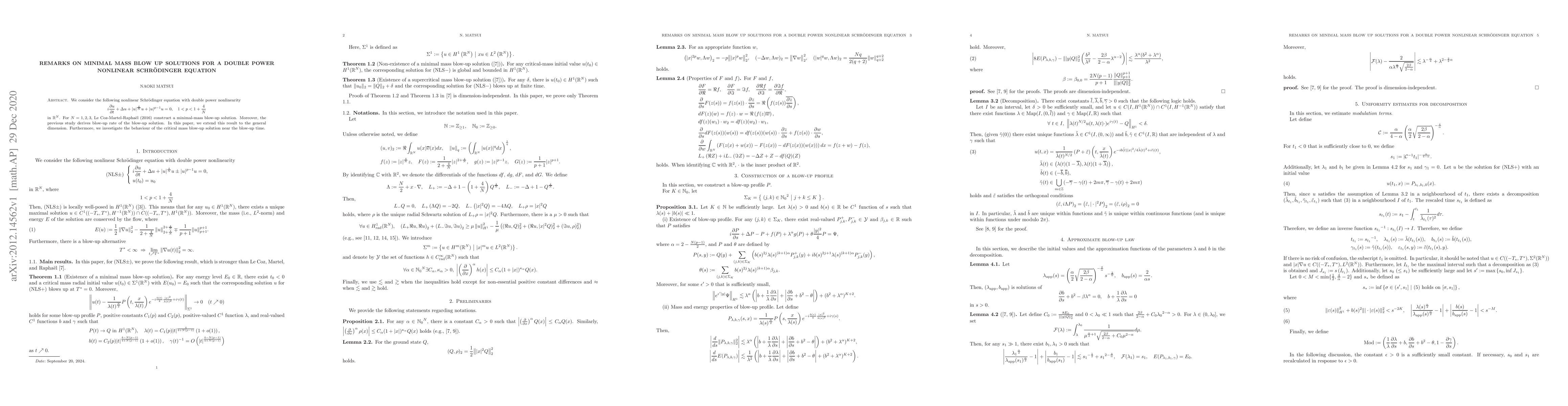 This paper extends the construction of minimal-mass blow-up solutions for a double power nonlinear Schrödinger equation to general dimensions, beyond the previously studied cases of $N=1,2,3$. It also examines the behavior of these solutions near the blow-up time.