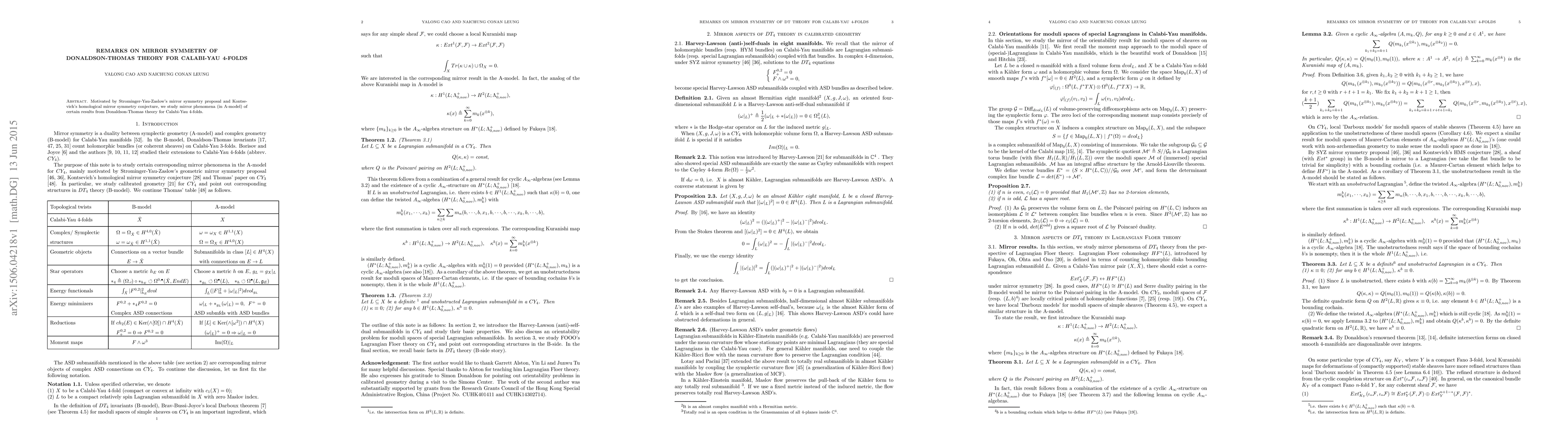 Summary: This paper investigates mirror symmetry phenomena in the A-model, exploring connections between Strominger-Yau-Zaslow's mirror symmetry proposal and Donaldson-Thomas theory for Calabi-Yau 4-folds, based on Kontsevich's homological mirror symmetry conjecture.