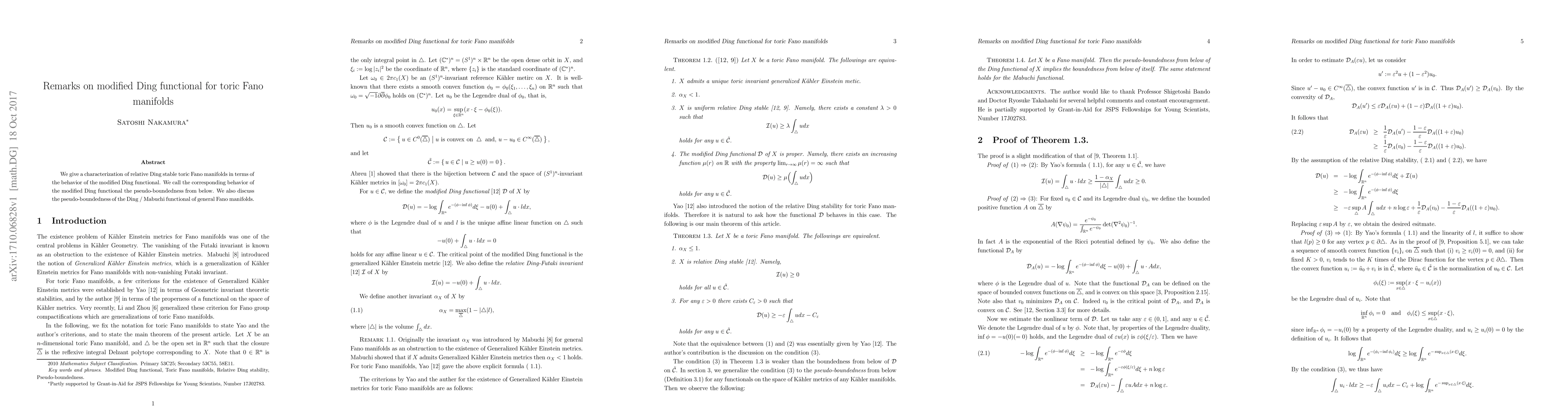 This paper characterizes relative Ding stable toric Fano manifolds using the behavior of the modified Ding functional, termed pseudo-boundedness from below. It also examines the pseudo-boundedness of the Ding/Mabuchi functional for general Fano manifolds.