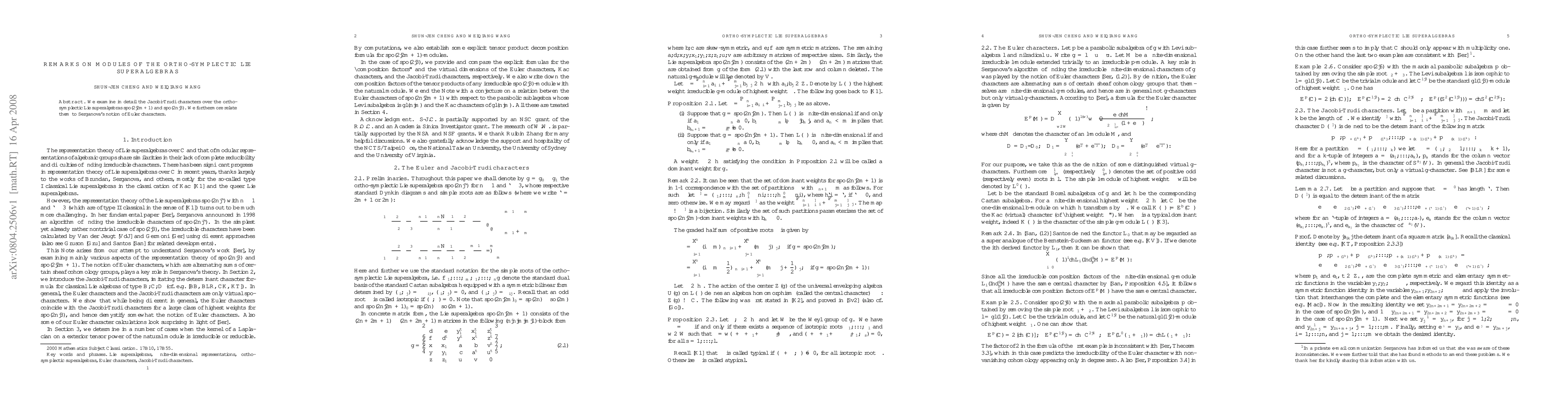 Summary: This paper investigates Jacobi-Trudi characters for ortho-symplectic Lie superalgebras spo(2|2m+1) and spo(2n|3), and connects these characters to Serganova's Euler characters. The focus is on the structural properties and character theory of these superalgebras.