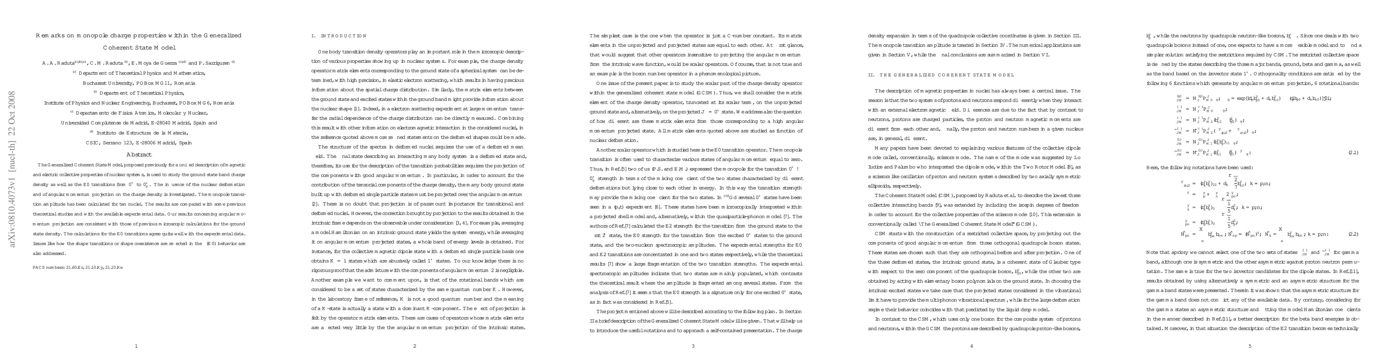 The Generalized Coherent State Model, proposed previously for a unified description of magnetic and electric collective properties of nuclear systems, is used to study the ground state band charge density as well as the E0 transitions from $0^+_{\beta}$ to $0^+_g$. The influence of the nuclear deformation and of angular momentum projection on the charge density is investigated. The monopole transition amplitude has been calculated for ten nuclei. The results are compared with some previous theoretical studies and with the available experimental data. Our results concerning angular momentum projection are consistent with those of previous microscopic calculations for the ground state density. The calculations for the E0 transitions agree quite well with the experimental data. Issues like how the shape transitions or shape coexistence are reflected in the $\rho(E0)$ behavior are also addressed.