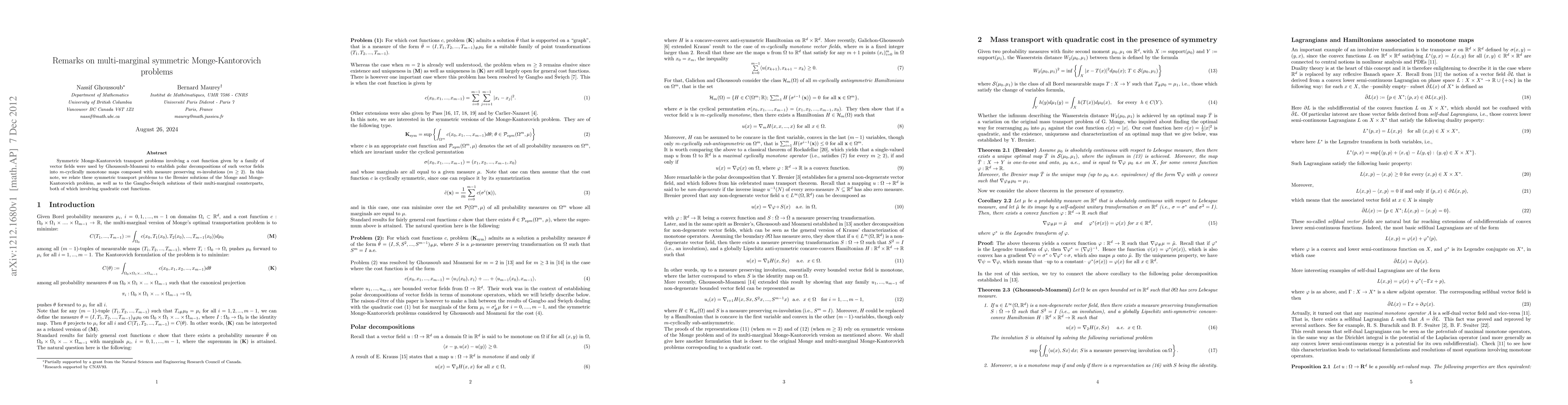 This paper explores symmetric Monge-Kantorovich transport problems defined by vector field cost functions and establishes connections between these problems and solutions for the Monge-Kantorovich and multi-marginal transport problems involving quadratic costs.