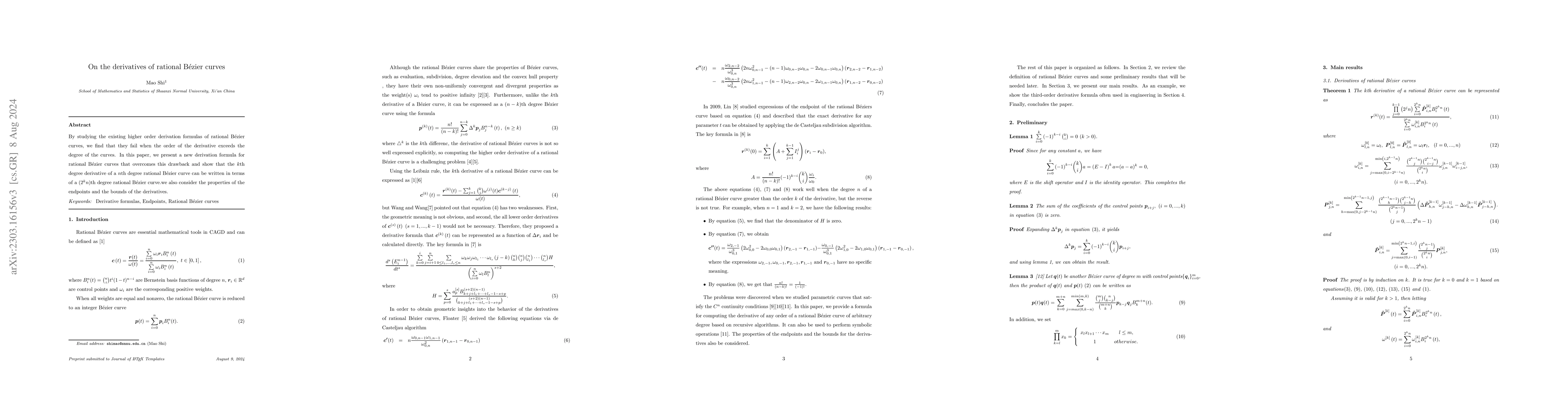 The paper presents a new derivation formula for rational Bézier curves, overcoming the drawback of existing formulas that fail when the derivative order exceeds the curve's degree.