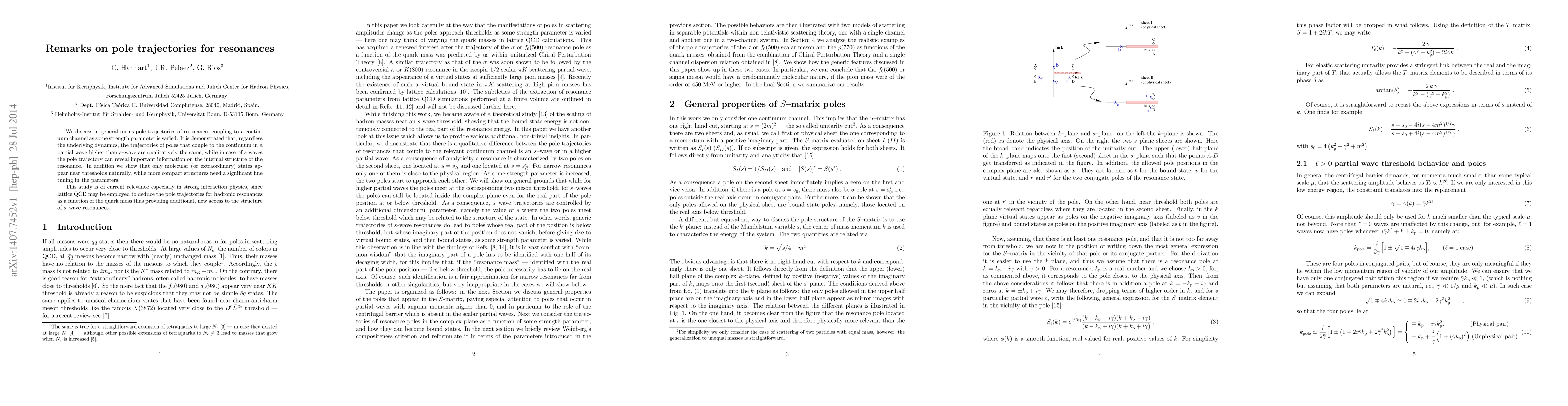 This paper explores the pole trajectories of resonances coupling to a continuum channel, showing that higher partial wave resonances exhibit similar pole trajectories, while s-wave resonances provide insights into their internal structure. It also highlights that molecular states naturally occur near thresholds, while more compact structures require parameter adjustments. The study is significant for strong interaction physics, particularly in lattice QCD for understanding hadronic resonances.