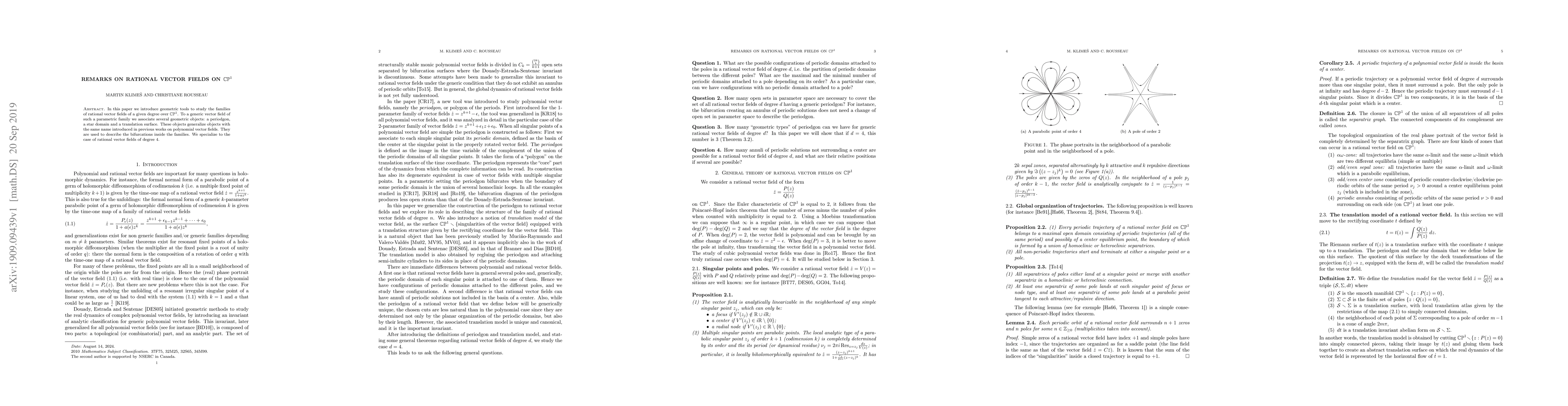 This paper introduces geometric tools to study rational vector fields of a given degree over $\mathbb C\mathbb P^1$, associating periodgons, star domains, and translation surfaces to describe bifurcations, with a focus on degree $4$ rational vector fields.