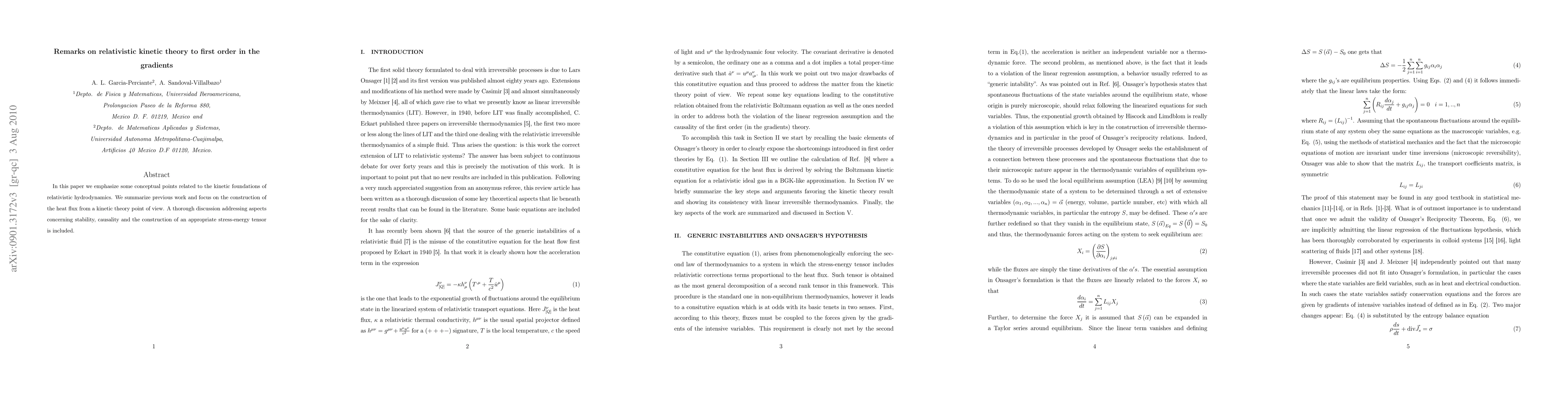 This paper discusses the kinetic foundations of relativistic hydrodynamics, focusing on constructing the heat flux from a relativistic kinetic theory perspective. It addresses stability, causality, and the construction of a stress-energy tensor for high-temperature relativistic fluids.