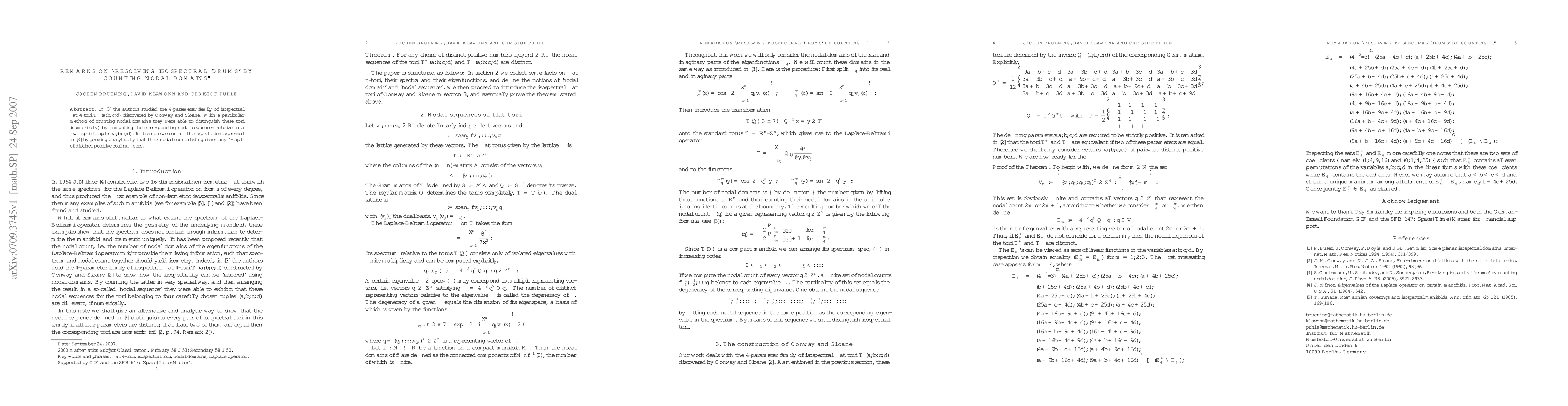 This paper confirms analytically that the method of counting nodal domains can distinguish isospectral flat 4-tori, originally identified by Conway and Sloane, by proving that different 4-tuples of distinct positive real numbers yield different nodal sequences. This confirms the numerical findings from a previous study.
