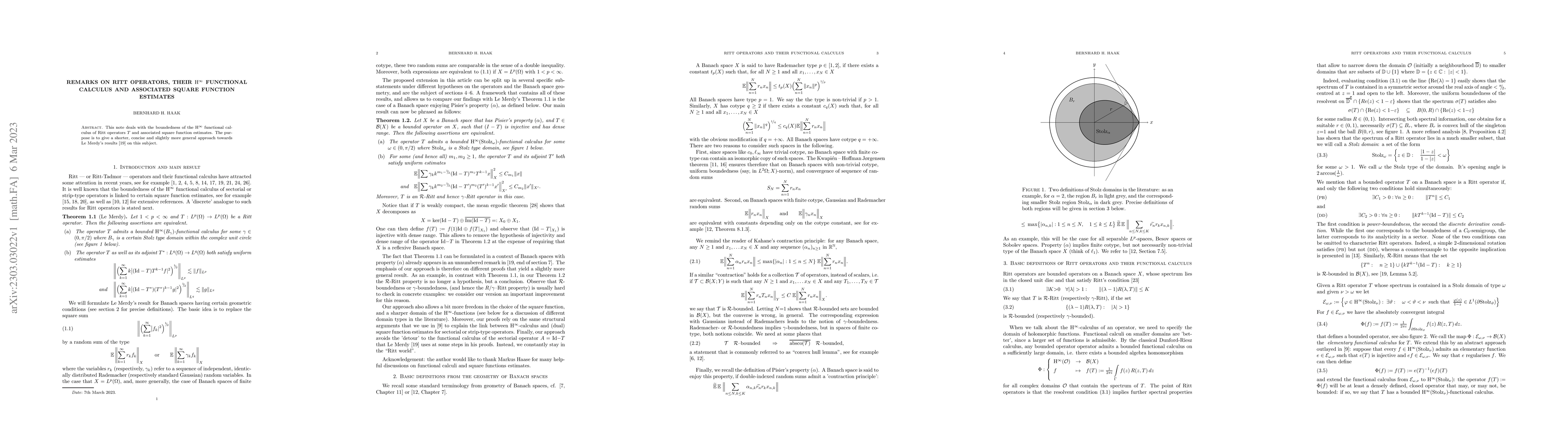 This note deals with the boundedness of the $H^\infty$ functional calculus of Ritt operators $T$ and associated square function estimates. The purpose is to give a shorter, concise and slightly more general approach towards Le~Merdy's results [19] on this subject.