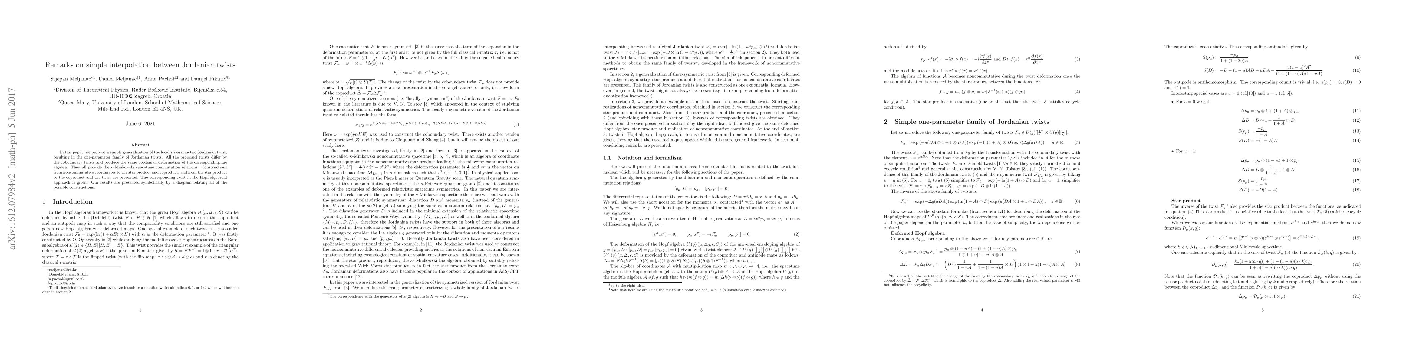 This paper generalizes the locally r-symmetric Jordanian twist to a one-parameter family, maintaining the same Jordanian deformation of Lie algebras and $\kappa$-Minkowski spacetime commutation relations. It presents constructions from noncommutative coordinates to the star product and coproduct, and provides a symbolic diagram relating all constructions.