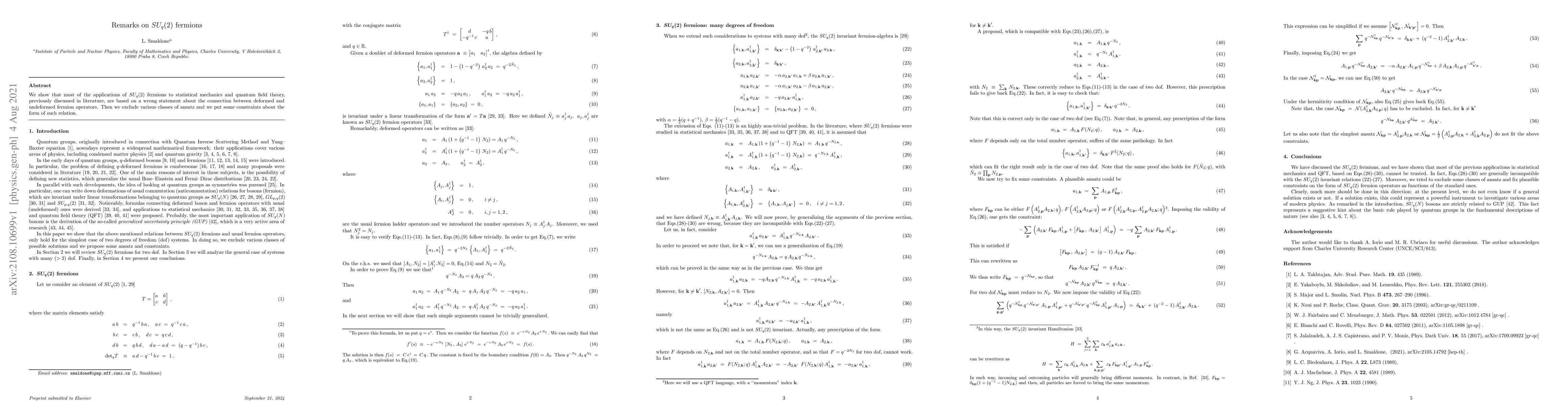 Summary: This paper identifies a fundamental error in previous applications of SU_q(2) fermions in statistical mechanics and quantum field theory, specifically regarding the relationship between deformed and undeformed fermion operators. It then proposes constraints on the correct form of this connection.