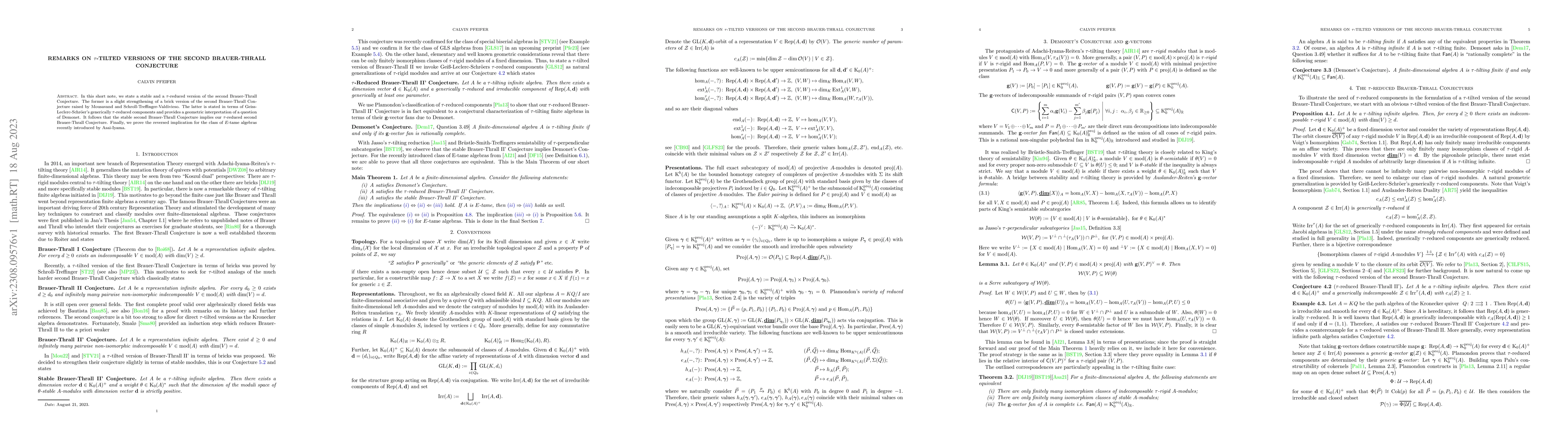 In this short note, we state a stable and a $\tau$-reduced version of the second Brauer-Thrall Conjecture. The former is a slight strengthening of a brick version of the second Brauer-Thrall Conjecture raised by Mousavand and Schroll-Treffinger-Valdivieso. The latter is stated in terms of Geiss-Leclerc-Schr\"oer's generically $\tau$-reduced components and provides a geometric interpretation of a question of Demonet. It follows that the stable second Brauer-Thrall Conjecture implies our $\tau$-reduced second Brauer-Thrall Conjecture. Finally, we prove the reversed implication for the class of E-tame algebras recently introduced by Asai-Iyama.