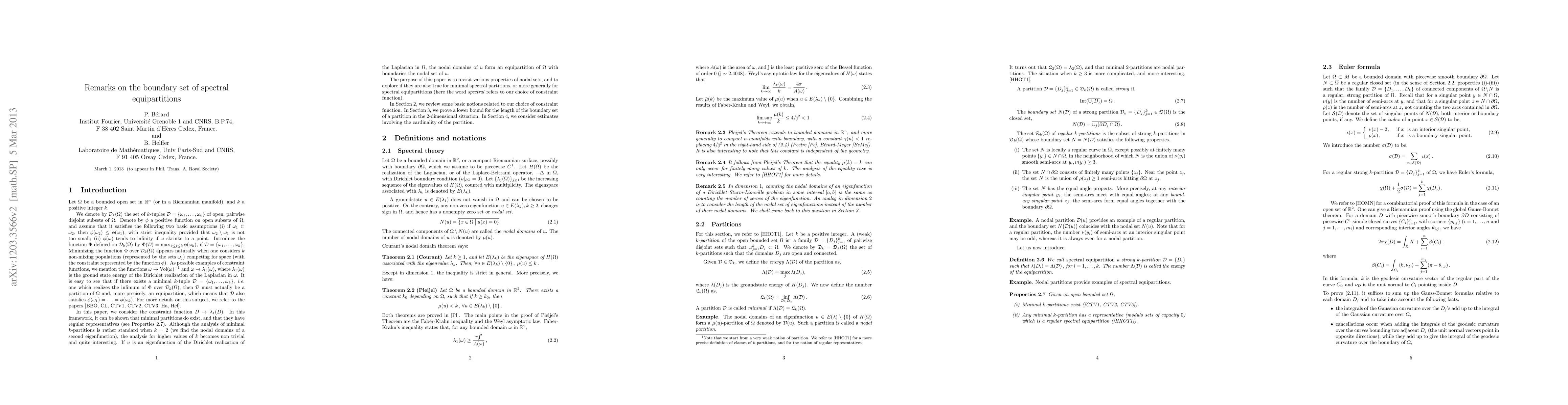 Given a bounded open set $\Omega$ in $\mathbb{R}^n$ (or a compact Riemannian manifold with boundary), and a partition of $\Omega$ by $k$ open sets $\omega_j$, we consider the quantity $\max_j \lambda(\omega_j)$, where $\lambda(\omega_j)$ is the ground state energy of the Dirichlet realization of the Laplacian in $\omega_j$. We denote by $\mathfrak{L}_k(\Omega)$ the infimum of $\max_j \lambda(\omega_j)$ over all $k$-partitions. A minimal $k$-partition is a partition which realizes the infimum. The purpose of this paper is to revisit properties of nodal sets and to explore if they are also true for minimal partitions, or more generally for spectral equipartitions. We focus on the length of the boundary set of the partition in the 2-dimensional situation.