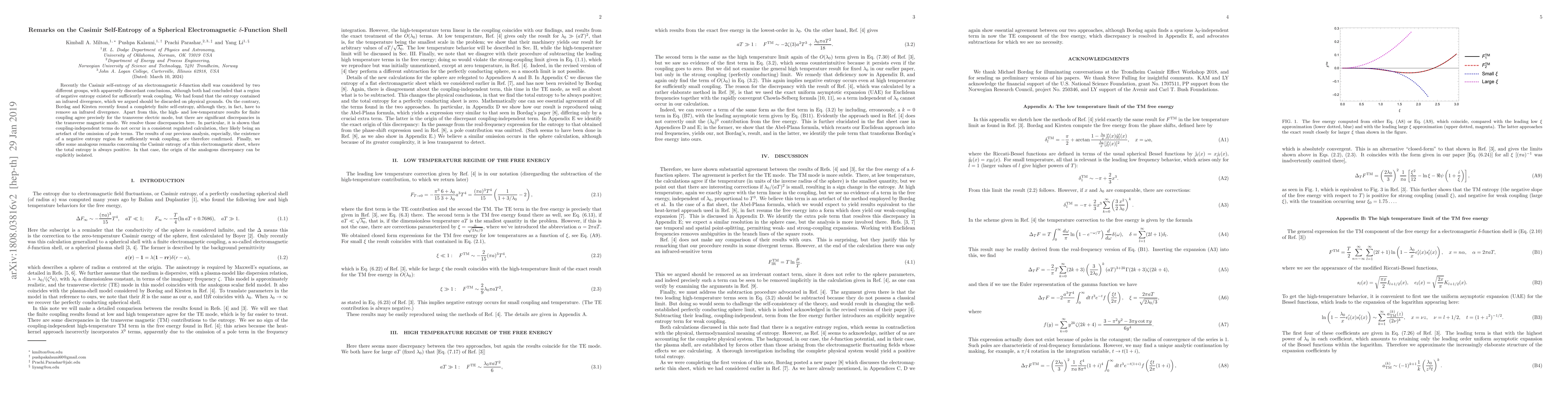 Recently the Casimir self-entropy of an electromagnetic $\delta$-function shell was considered by two different groups, with apparently discordant conclusions, although both had concluded that a region of negative entropy existed for sufficiently weak coupling. We had found that the entropy contained an infrared divergence, which we argued should be discarded on physical grounds. On the contrary, Bordag and Kirsten recently found a completely finite self-entropy, although they, in fact, have to remove an infrared divergence. Apart from this, the high- and low-temperature results for finite coupling agree precisely for the transverse electric mode, but there are significant discrepancies in the transverse magnetic mode. We resolve those discrepancies here. In particular, it is shown that coupling-independent terms do not occur in a consistent regulated calculation, they likely being an artefact of the omission of pole terms. The results of our previous analysis, especially, the existence of a negative entropy region for sufficiently weak coupling, are therefore confirmed. Finally, we offer some analogous remarks concerning the Casimir entropy of a thin electromagnetic sheet, where the total entropy is always positive. In that case, the origin of the analogous discrepancy can be explicitly isolated.