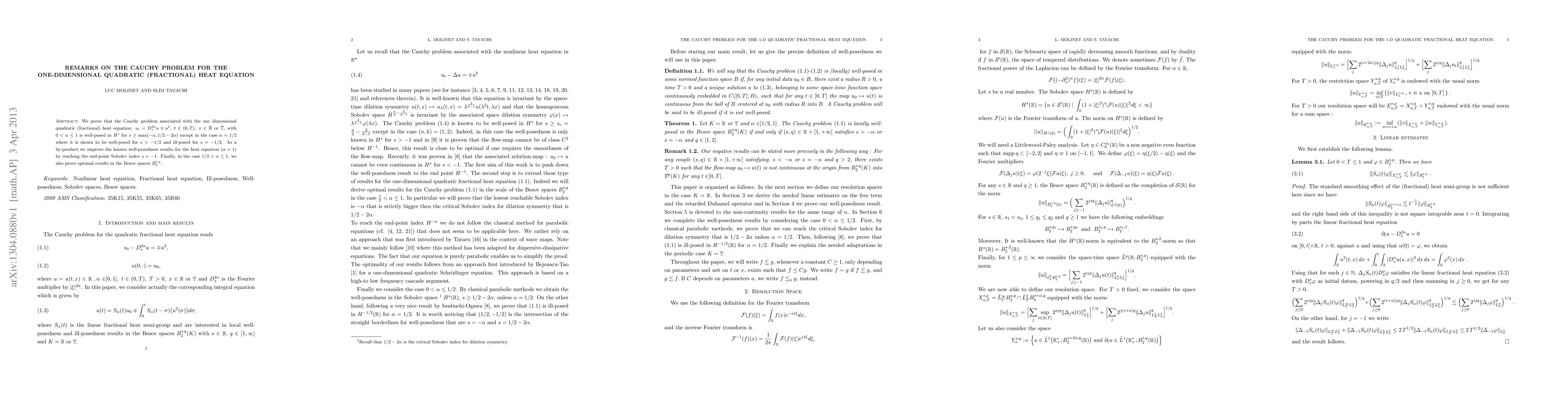 This paper proves the well-posedness of the Cauchy problem for the one-dimensional quadratic (fractional) heat equation under specific conditions on the Sobolev index $s$ and the fractional parameter $\alpha$. It also improves existing well-posedness results for the standard heat equation.