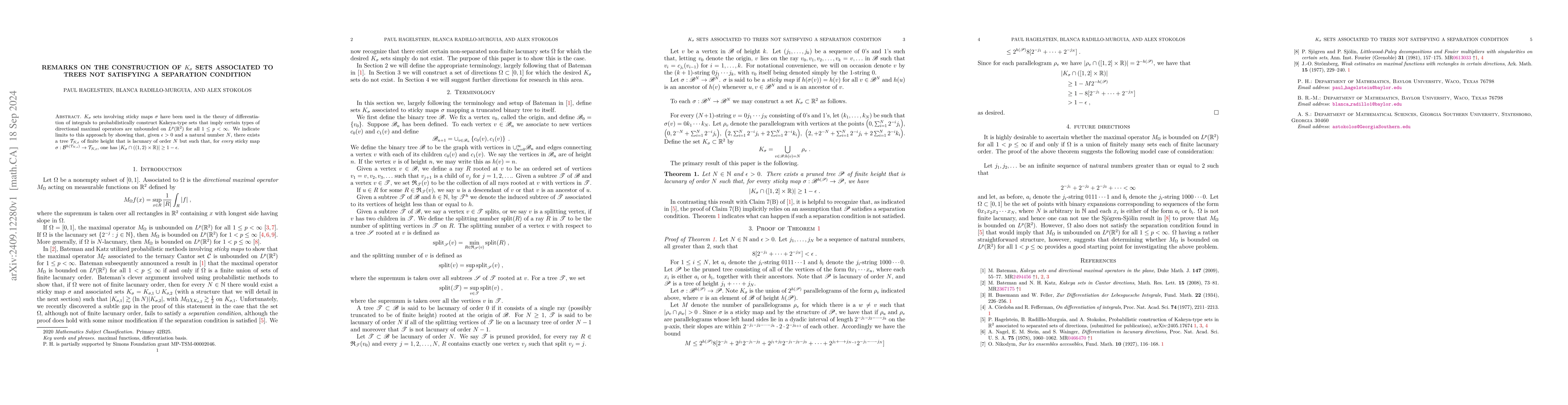 This paper demonstrates limitations in constructing $K_\sigma$ sets from lacunary trees to form Kakeya-type sets, showing that despite being lacunary of order $N$, such trees cannot be used to create $K_\sigma$ sets implying the unboundedness of directional maximal operators on $L^p(\mathbb{R}^2)$ for all $1 \leq p < \infty$.