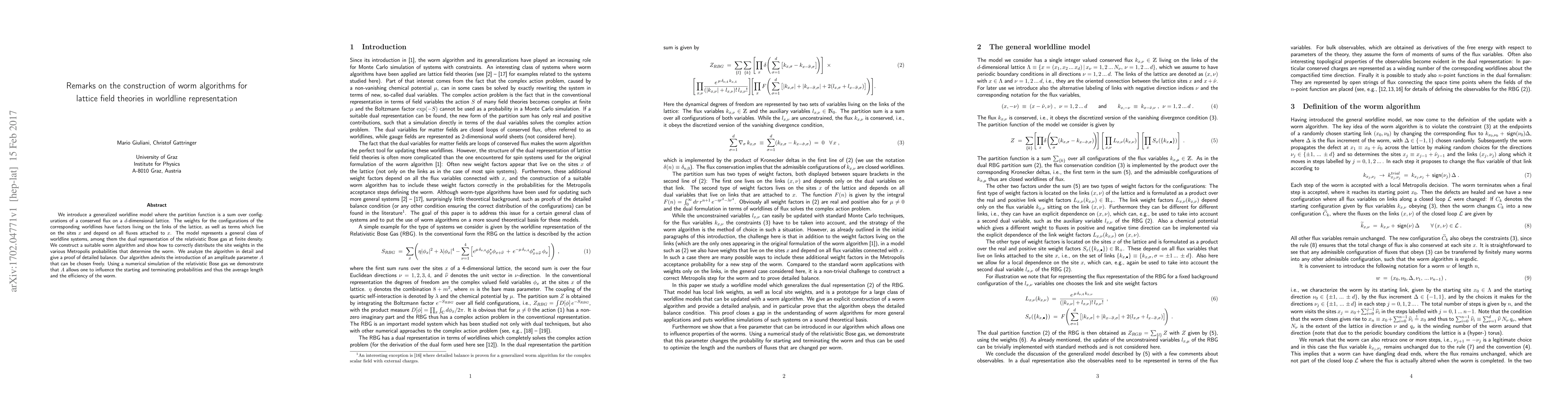 We introduce a generalized worldline model where the partition function is a sum over configurations of a conserved flux on a d-dimensional lattice. The weights for the configurations of the corresponding worldlines have factors living on the links of the lattice, as well as terms which live on the sites x and depend on all fluxes attached to x. The model represents a general class of worldline systems, among them the dual representation of the relativistic Bose gas at finite density. We construct a suitable worm algorithm and show how to correctly distribute the site weights in the various Metropolis probabilities that determine the worm. We analyze the algorithm in detail and give a proof of detailed balance. Our algorithm admits the introduction of an amplitude parameter A that can be chosen freely. Using a numerical simulation of the relativistic Bose gas we demonstrate that A allows one to influence the starting and terminating probabilities and thus the average length and the efficiency of the worm.