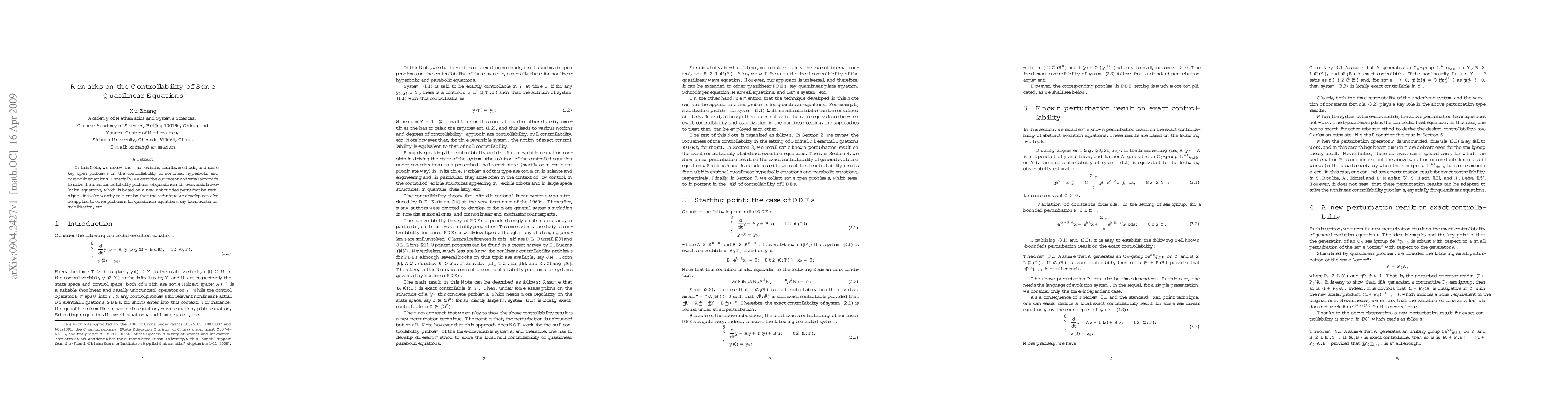 In this Note, we review the main existing results, methods, and some key open problems on the controllability of nonlinear hyperbolic and parabolic equations. Especially, we describe our recent universal approach to solve the local controllability problem of quasilinear time-reversible evolution equations, which is based on a new unbounded perturbation technique. It is also worthy to mention that the technique we develop can also be applied to other problems for quasilinear equations, say local existence, stabilization, etc.