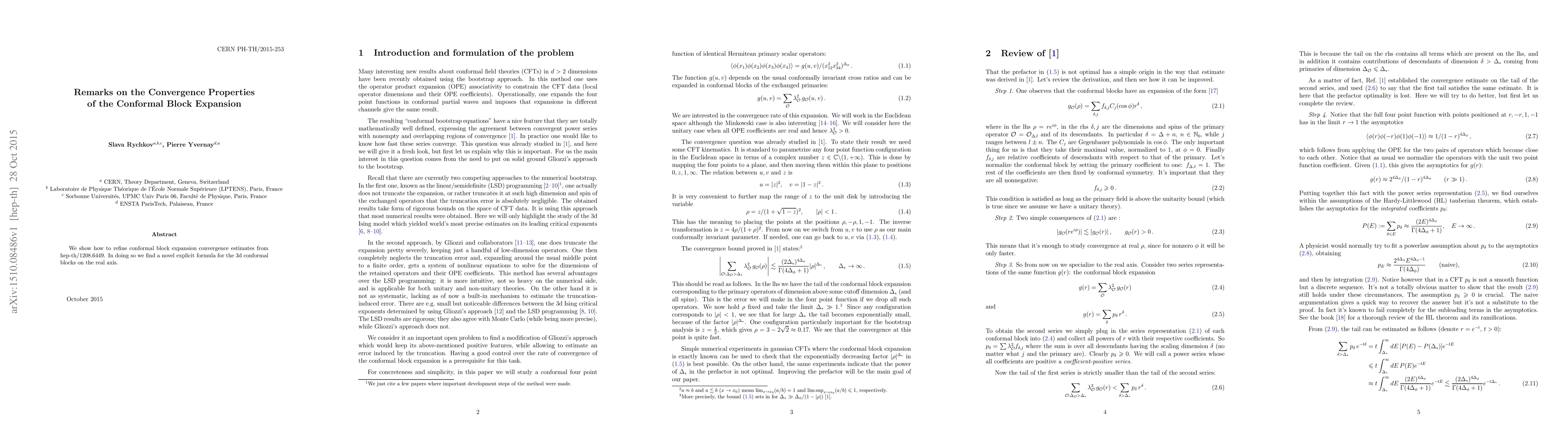 We show how to refine conformal block expansion convergence estimates from hep-th/1208.6449. In doing so we find a novel explicit formula for the 3d conformal blocks on the real axis.