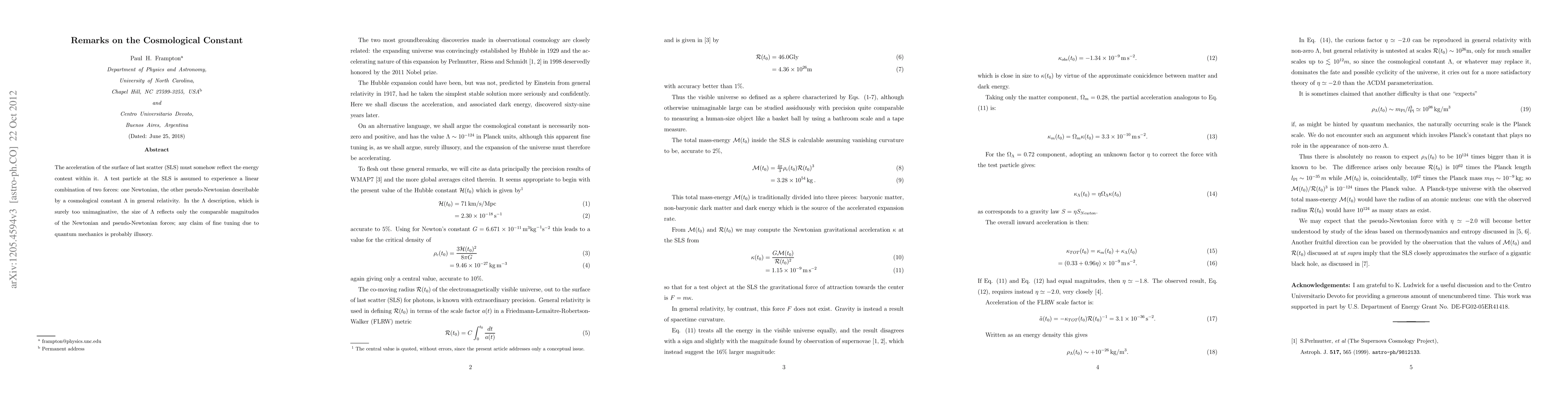 The acceleration of the surface of last scatter (SLS) must somehow reflect the energy content within it. A test particle at the SLS is assumed to experience a linear combination of two forces: one Newtonian, the other pseudo-Newtonian describable by a cosmological constant ${\Lambda}$ in general relativity. In the ${\Lambda}$ description, which is surely too unimaginative, the size of ${\Lambda}$ reflects only the comparable magnitudes of the Newtonian and pseudo-Newtonian forces; any claim of fine tuning due to quantum mechanics is probably illusory.