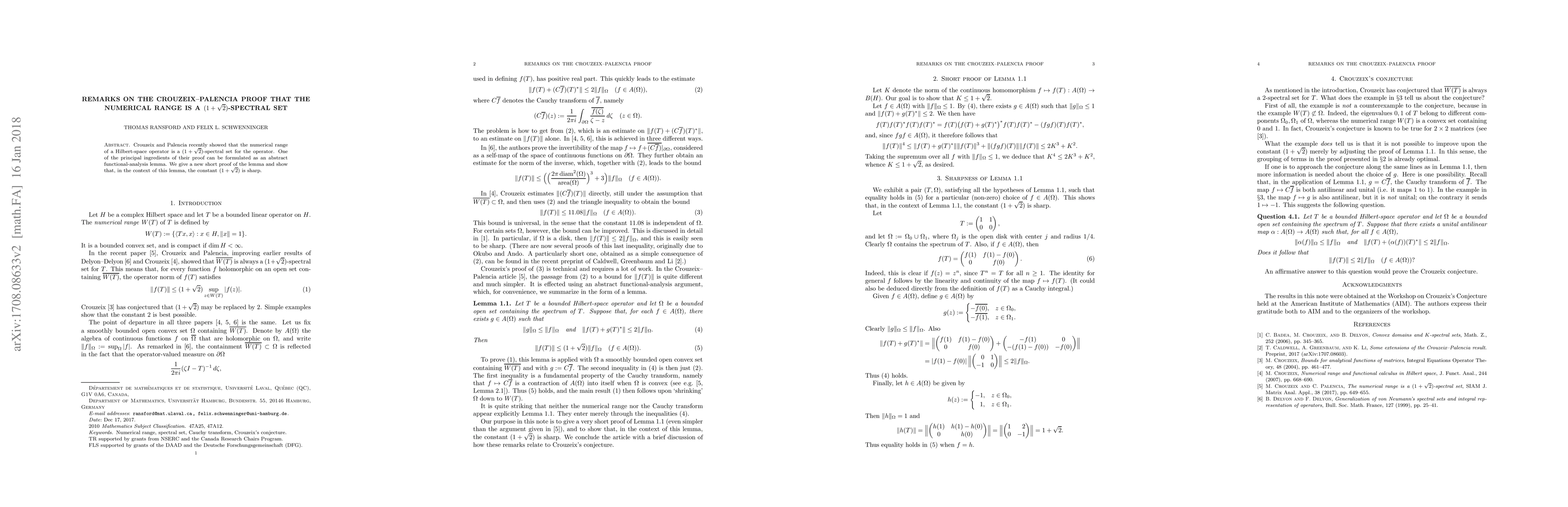 Crouzeix and Palencia recently showed that the numerical range of a Hilbert-space operator is a $(1+\sqrt2)$-spectral set for the operator. One of the principal ingredients of their proof can be formulated as an abstract functional-analysis lemma. We give a new short proof of the lemma and show that, in the context of this lemma, the constant $(1+\sqrt2)$ is sharp.