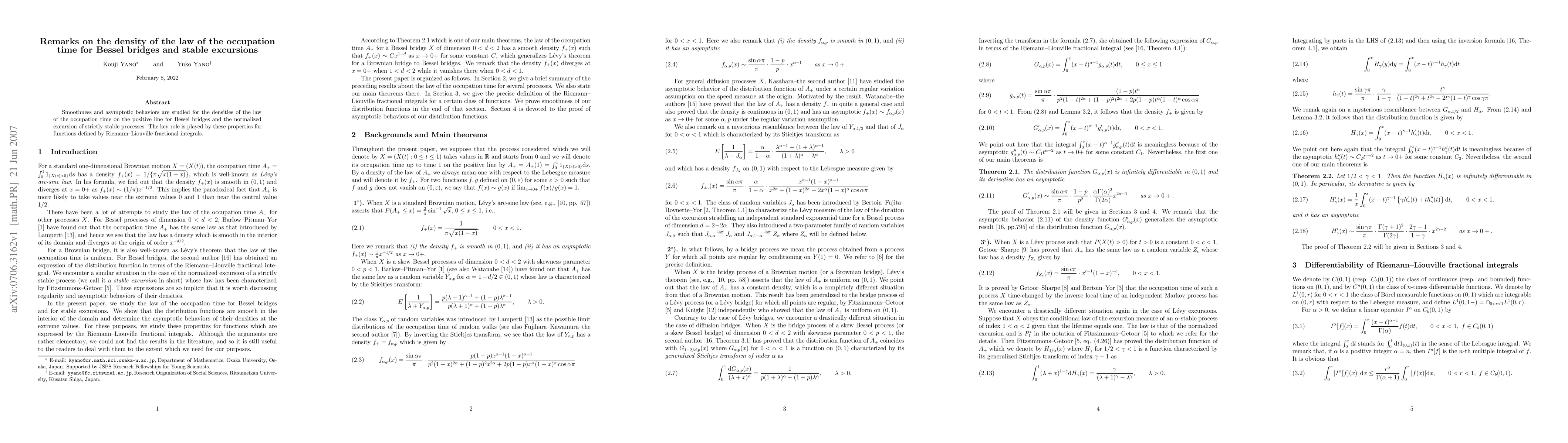 Smoothness and asymptotic behaviors are studied for the densities of the law of the occupation time on the positive line for Bessel bridges and the normalized excursion of strictly stable processes. The key role is played by these properties for functions defined by Riemann--Liouville fractional integrals.
