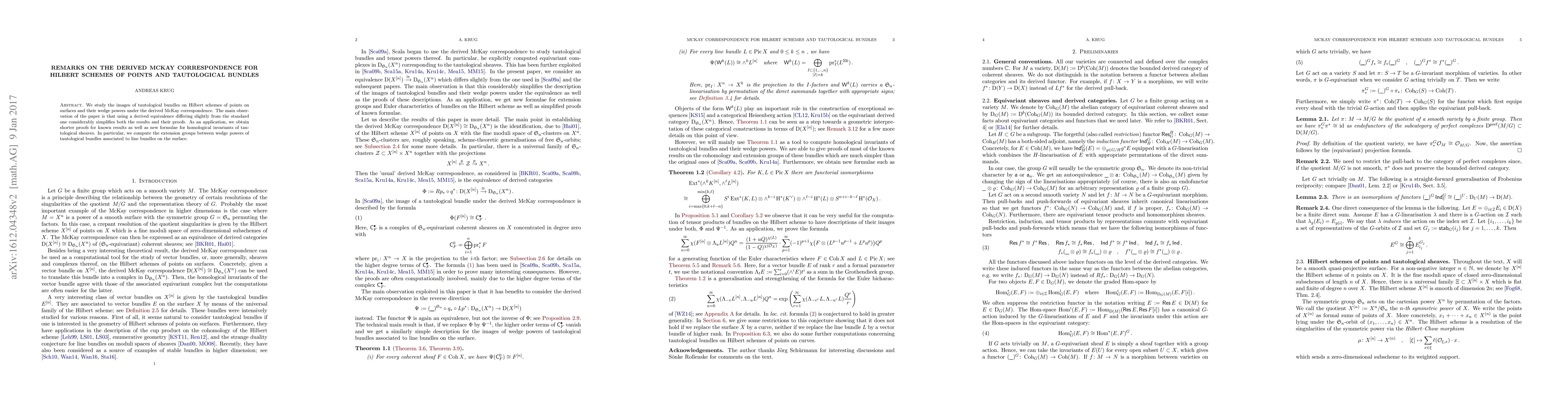 This paper examines the derived McKay correspondence for Hilbert schemes of points on surfaces, showing that a refined derived equivalence simplifies results and proofs. It provides new formulae for homological invariants and computes extension groups between wedge powers of tautological bundles.