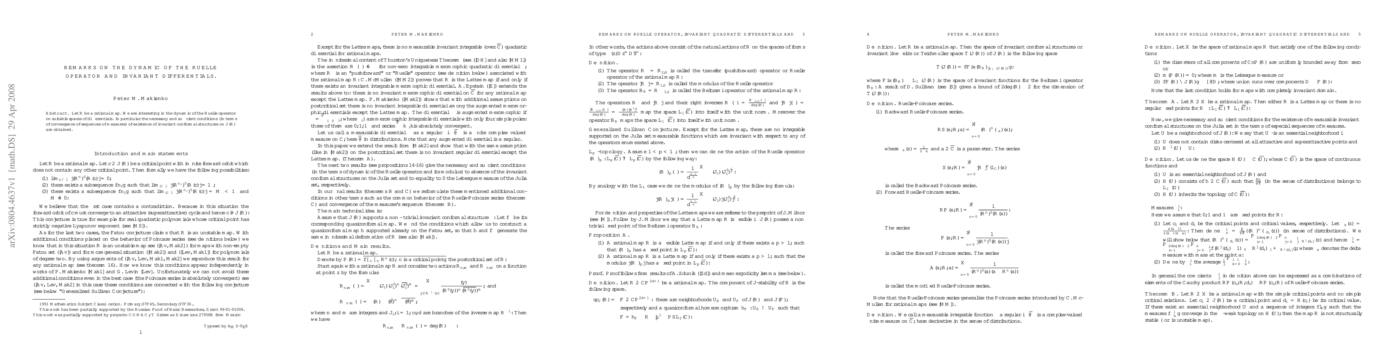 This paper investigates the dynamics of the Ruelle operator on spaces of differentials for rational maps, establishing necessary and sufficient conditions for the existence of invariant conformal structures on the Julia set.