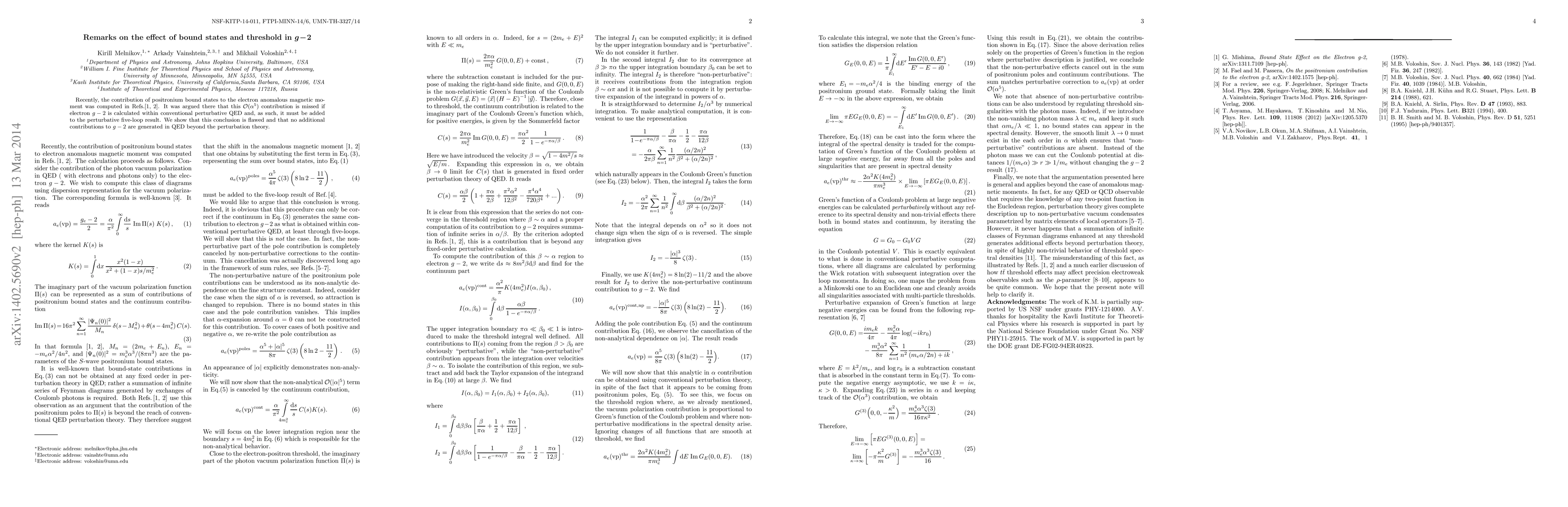 Recently, the contribution of positronium bound states to the electron anomalous magnetic moment was computed in Refs.[1,2]. It was argued there that this O(alpha^5) contribution is missed if electron g-2 is calculated within conventional perturbative QED and, as such, it must be added to the perturbative five-loop result. We show that this conclusion is flawed and that no additional contributions to g-2 are generated in QED beyond the perturbation theory.