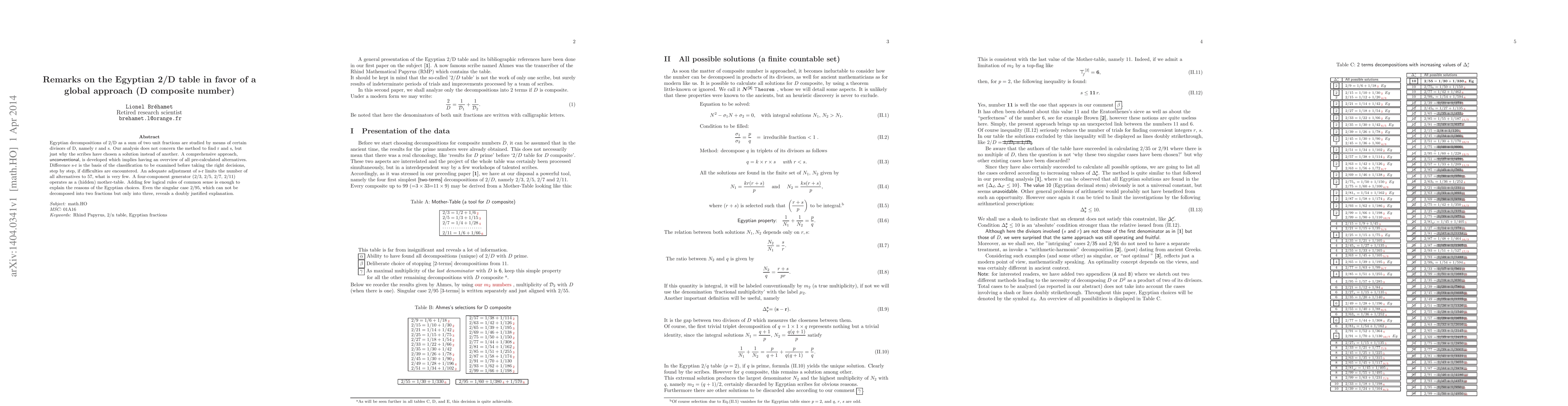 Egyptian decompositions of 2/D as a sum of two unit fractions are studied by means of certain divisors of D, namely r and s. Our analysis does not concern the method to find r and s, but just why the scribes have chosen a solution instead of another. A comprehensive approach, unconventional, is developed which implies having an overview of all pre-calculated alternatives. Difference s-r is the basis of the classification to be examined before taking the right decisions, step by step, if difficulties are encountered. An adequate adjustment of s-r limits the number of all alternatives to 57, what is very few. A four-component generator (2/3, 2/5, 2/7, 2/11) operates as a (hidden) mother-table. Adding few logical rules of common sense is enough to explain the reasons of the Egyptian choices. Even the singular case 2/95, which can not be decomposed into two fractions but only into three, reveals a doubly justified explanation.