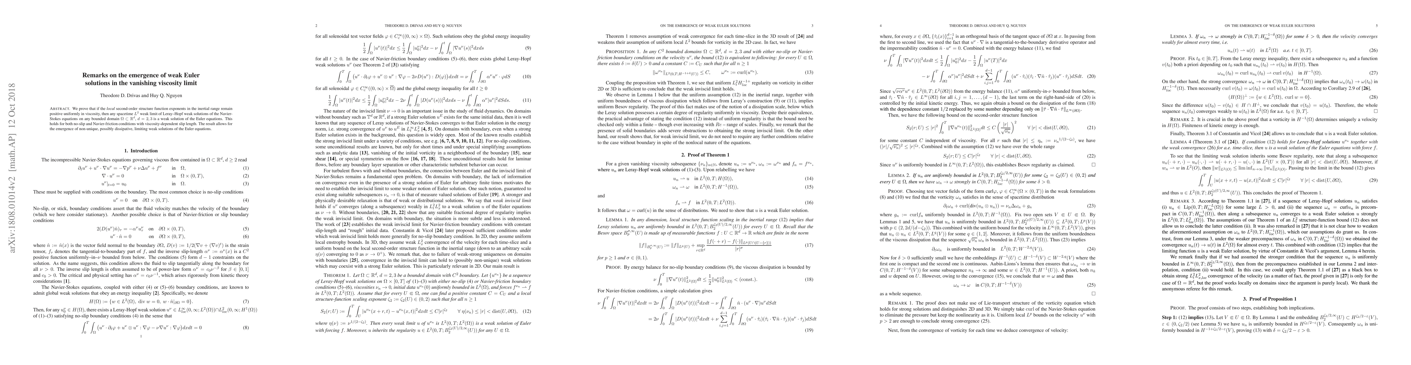 We prove that if the local second-order structure function exponents in the inertial range remain positive uniformly in viscosity, then any spacetime $L^2$ weak limit of Leray--Hopf weak solutions of the Navier-Stokes equations on any bounded domain $\Omega\subset \mathbb{R}^d$, $d= 2,3$ is a weak solution of the Euler equations. This holds for both no-slip and Navier-friction conditions with viscosity-dependent slip length. The result allows for the emergence of non-unique, possibly dissipative, limiting weak solutions of the Euler equations.