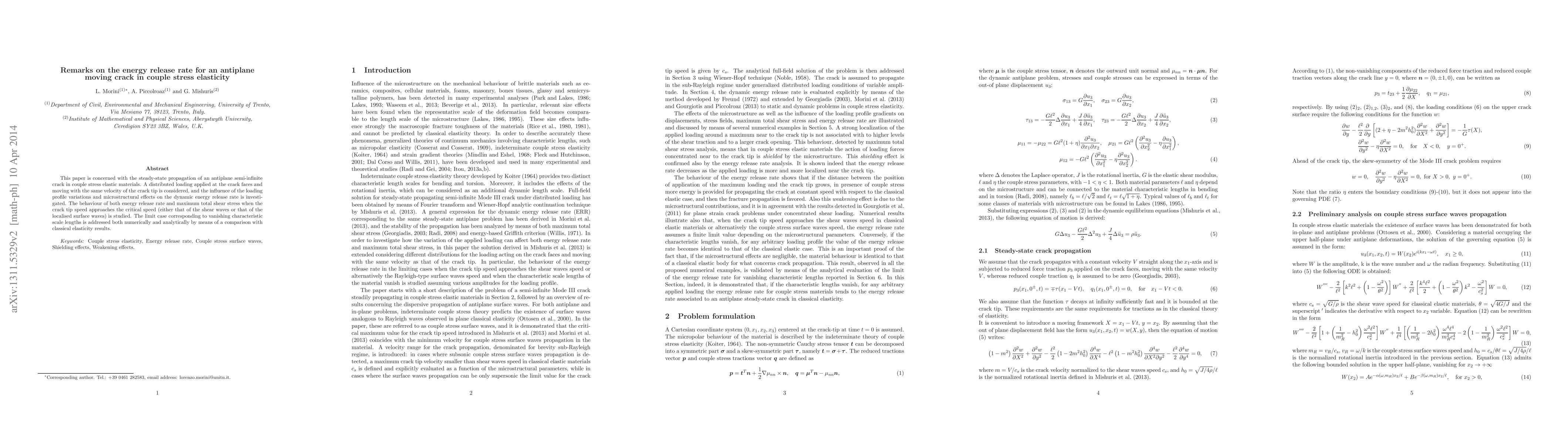 This paper investigates the dynamic energy release rate for an antiplane semi-infinite crack in couple stress elasticity under distributed loading, examining the effects of loading profile variations and microstructural influences. It also explores the behavior of energy release and shear stress as the crack tip approaches critical speeds, comparing results with classical elasticity.