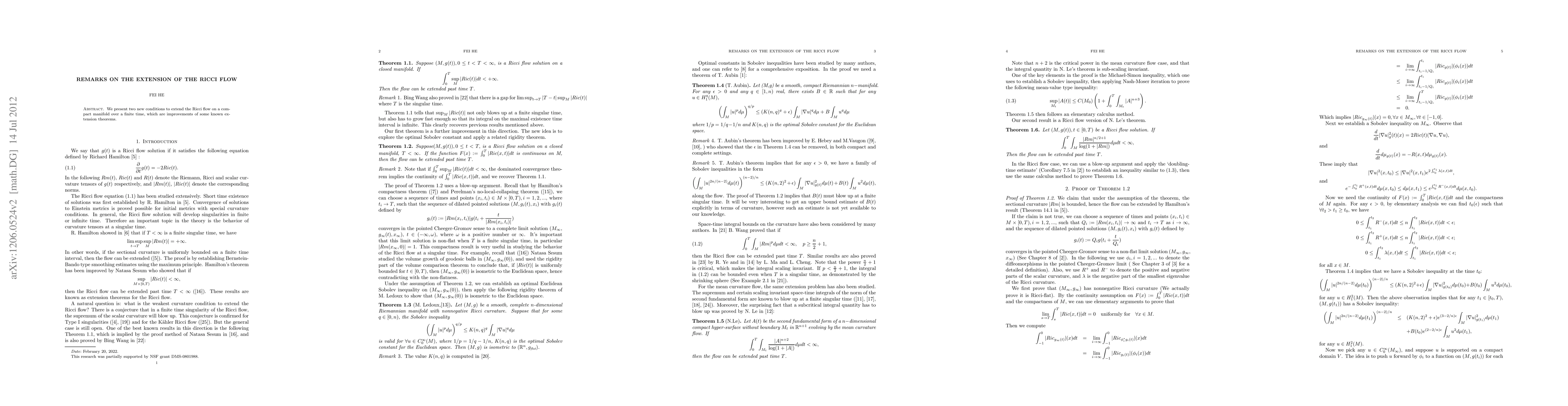 We present two new conditions to extend the Ricci flow on a compact manifold over a finite time, which are improvements of some known extension theorems.